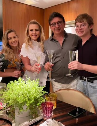 Branca e Racine Mourão receberam a lista afetiva, no último sábado, dia 20, para brindar seus 29 anos de casados, Bodas de Safira, em jantar com assinatura do chef Lúcio Figueiredo. A noite foi das mais agradáveis, em seu endereço, quando o casal também aproveitou para celebrar a vida, o amor e a família. No clique, Branca e Racine com os filhos Analiz e Thiago.