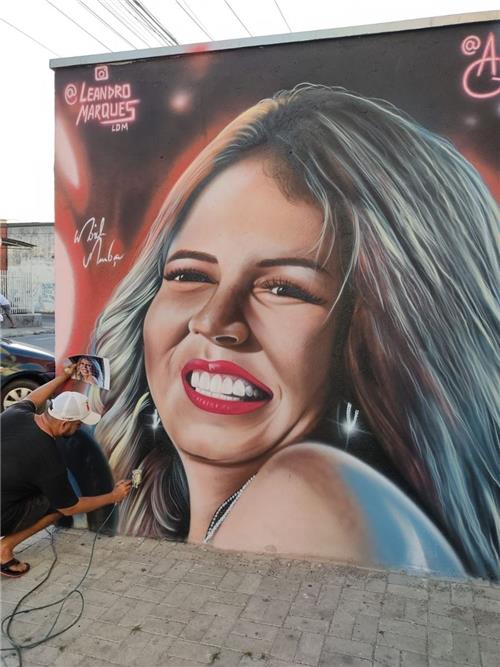 Em homenagem à cantora Marília Mendonça, que faleceu na última sexta-feira, 5, devido a um acidente de avião, os artistas Leandro Marques e Anderson Araújo decidiram eternizar o sertanejo da cantora no formato de grafite em Caucaia.