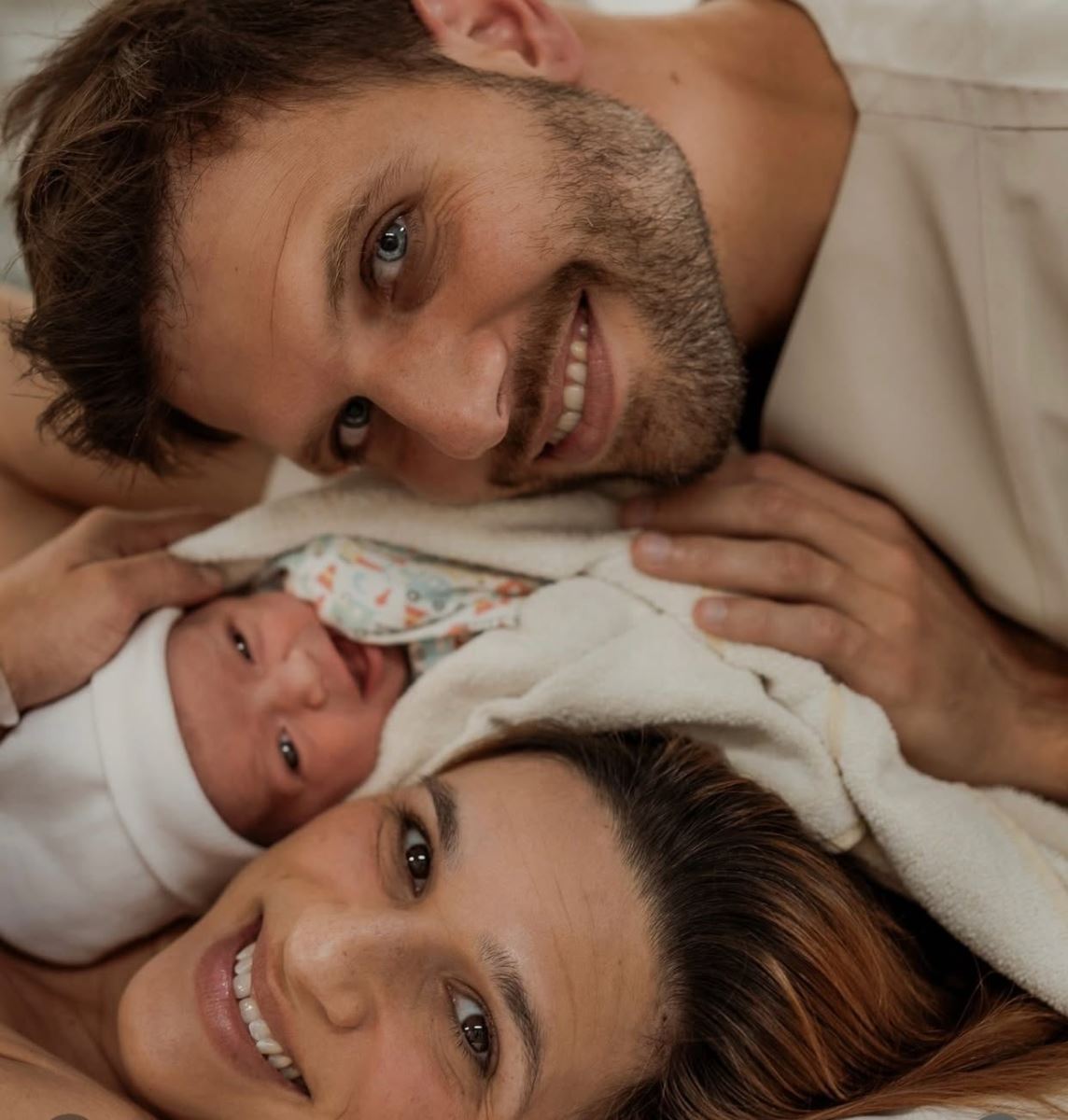 “Nossa Eva chegou”, escreveu a medalhista de bronze nos Jogos Olímpicos de Paris, legendando a foto em que a família aparece radiante em seu primeiro momento juntos.
