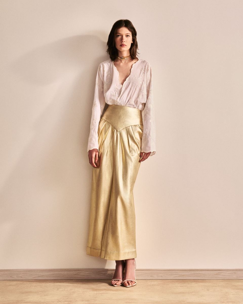 O rigor da alfaiataria encontra a leveza dos volumes fluidos; a sobriedade dos tons neutros dialoga com o impacto dos tecidos nobres. As peças evocam serenidade, equilíbrio e uma beleza que não precisa de excessos para se destacar. É moda pensada para celebrar a paz interior e o brilho que sempre esteve ali.