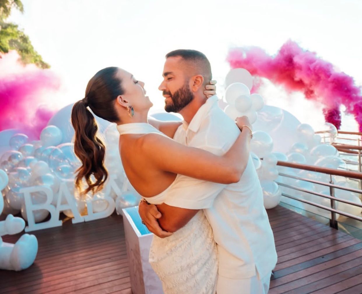 Dias após anunciar a gravidez, o casal reuniu familiares e amigos em uma celebração intimista, registrada nas redes sociais. E a grande surpresa aconteceu quando uma fumaça cor-de-rosa tomou conta do ambiente, revelando a espera de uma menina, que se chamará Maria Luísa, carinhosamente apelidada de Malu.