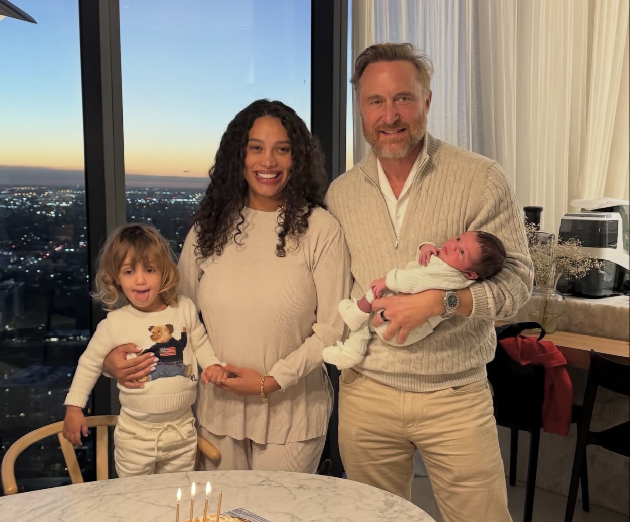 Juntos há cerca de oito anos, David e Jessica também são pais de Cyan, de 2 anos. O DJ ainda é pai de Tim Elvis Eric, de 22, e Angie, de 19, do casamento anterior com Cathy Guetta.