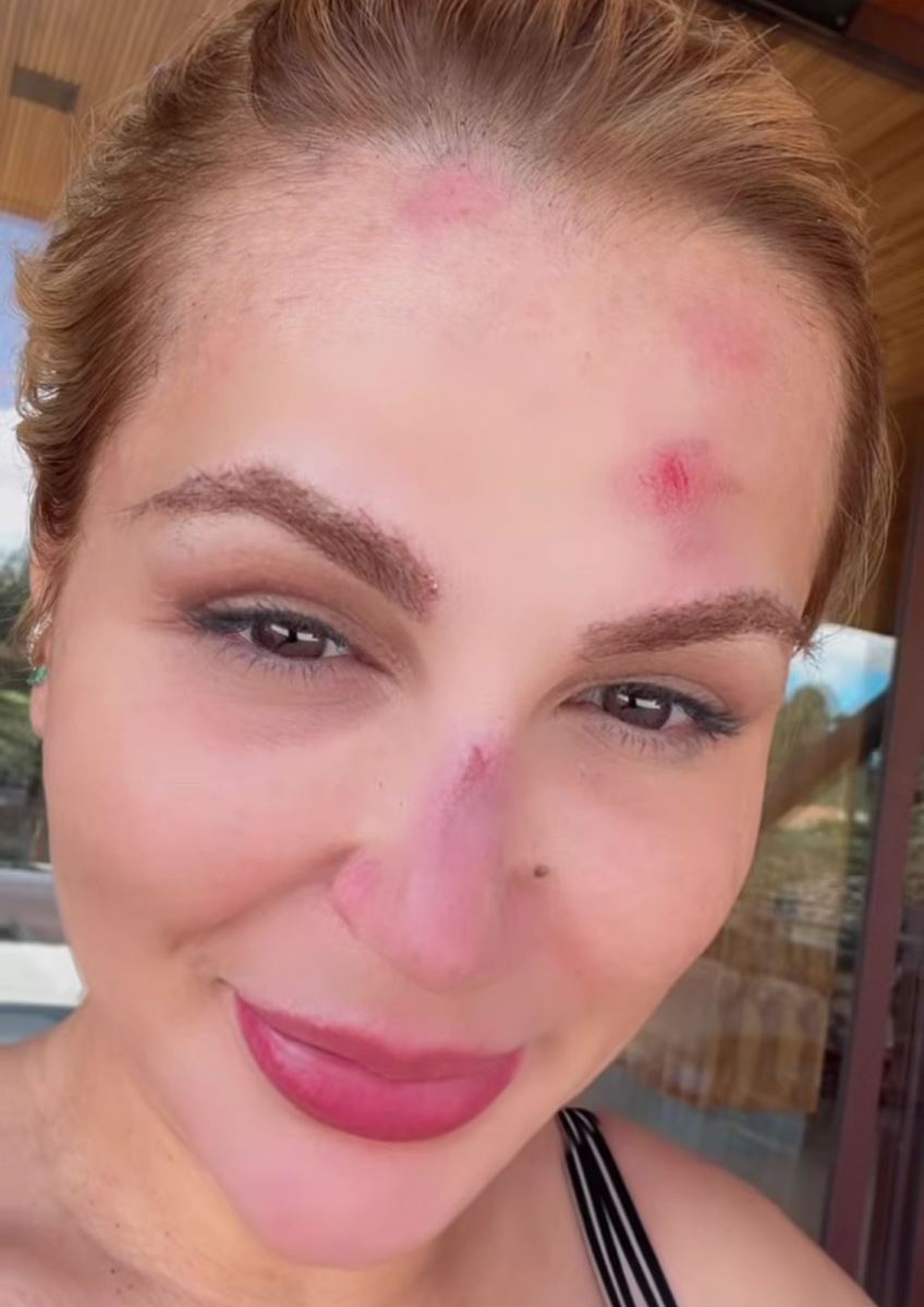 Nos stories, Deolane exibiu os ferimentos e mostrou detalhes do impacto, com marcas de vermelhidão e inchaço, principalmente na testa e na região do nariz. Apesar do susto, ela manteve o bom humor ao comentar o ocorrido: “A pessoa com a cara perfeita agorinha… caiu um negócio em cima de mim”, disse, em tom descontraído.