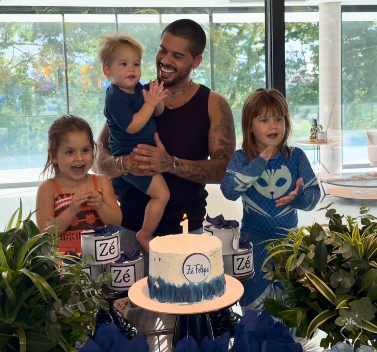 Em sua mansão, em Goiânia, o artista reuniu a família para uma comemoração discreta. Nas redes sociais, Zé compartilhou registros do dia, incluindo um vídeo encantador brincando com o caçula, de apenas um ano.