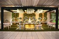 Josiel da Realizart assumiu a decoração, com bolo e bem casados da Cacau Baunilha e doces gourmet por Valéria Chocolates.