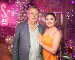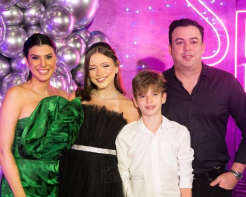Sarah Falcão celebrou seus 15 anos com a melhor das energias. Ao lado de familiares e amigos, a herdeira de Manoela Pimenta e Matheus Góis comemorou o baile debutante no Vasto, na noite de sábado, 13 de maio de 2023.