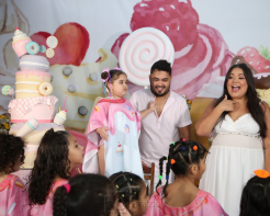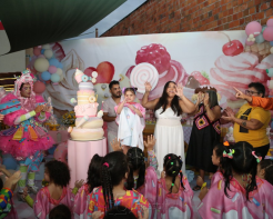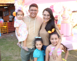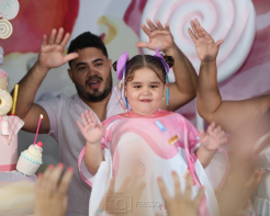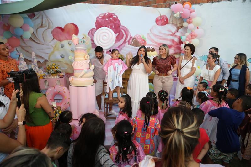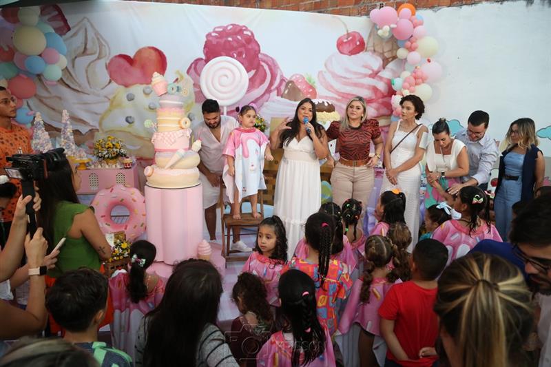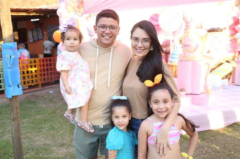 Janayna e Ton Santos recepcionaram turma animada para a comemoração aniversarial de quatro anos da filha Tayla. A celebração ocorreu na tarde de terça-feira, 18 de julho de 2023, tendo o Vila Balengo como palco. Matheus Cavalcante assinou o cerimonial.