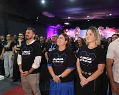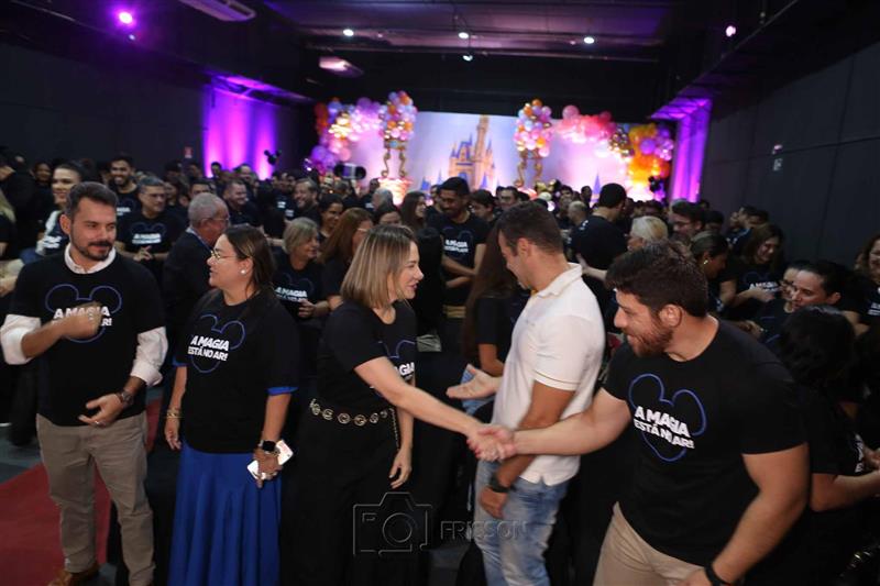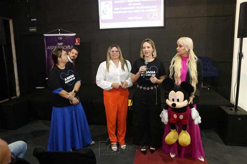 Icônico e histórico personagem, Mickey aterrissou no Grupo Cidade, ao lado da mentora empresarial e trainer Disney Geórgia Brasil Pontes, para o evento de apresentação e formatação do início da implantação do Padrão Disney na empresa. A solenidade reuniu colaboradores de todos os setores na manhã desta sexta-feira, 1º de março de 2024.