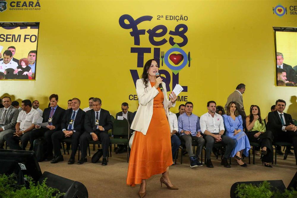 A presidente do Comitê Intersetorial de Governança do Ceará Sem Fome e primeira-dama do estado, Lia de Freitas, destacou a importância da valorização dos agentes das cozinhas e de compartilhamento dos resultados e avanços do programa. “Esta edição marca a saída de 150 mil pessoas da insegurança alimentar no Ceará. Também celebramos os dois anos de cozinhas do Ceará Sem Fome, quase três do programa Ceará Sem Fome, os 22 anos do Bolsa Família e os 80 anos da Organização das Nações Unidas”, afirmou.