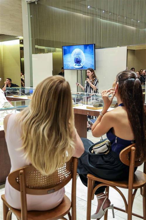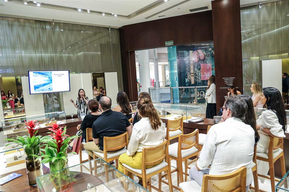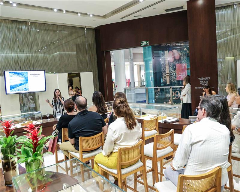 Para marcar a ocasião, a joalheria trouxe de São Paulo a especialista em arte, Luiza Adas, que conduziu os convidados por uma visita guiada virtual pela exposição "8Oceanos", realizada pela HStern no Rio de Janeiro e em São Paulo. Luiza provocou os presentes a prenderem o fôlego e mergulhar, metaforicamente, através das imagens das obras de arte criadas por dez conceituados artistas plásticos contemporâneos brasileiros para a mostra submersa exclusiva.