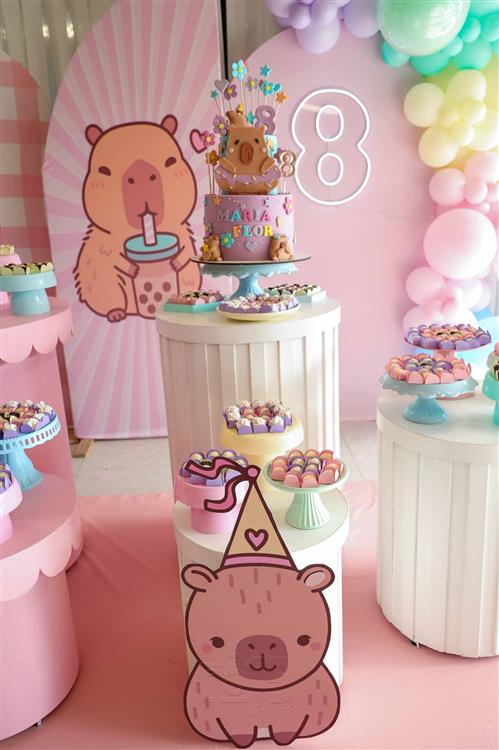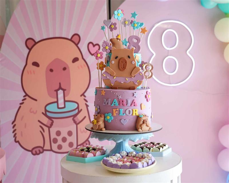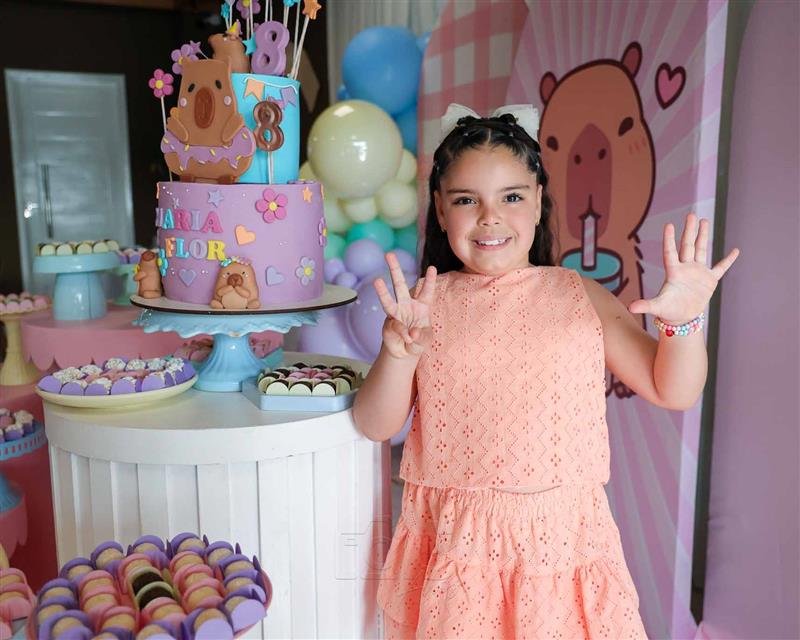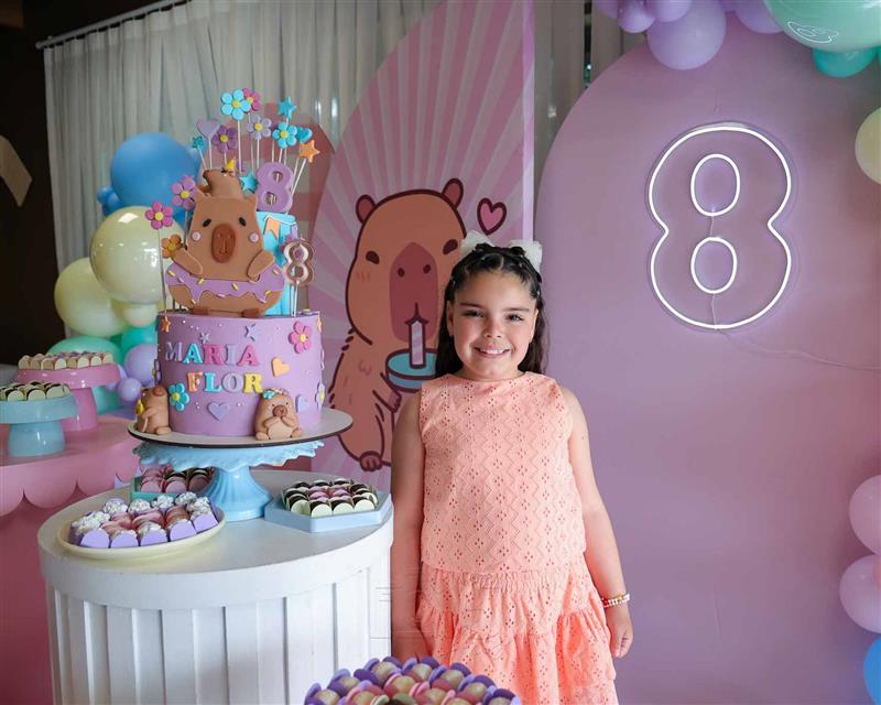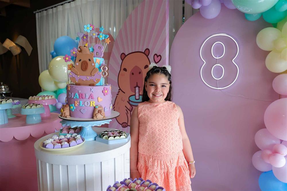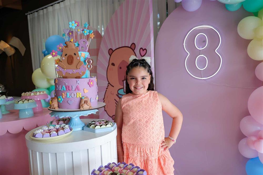 O b-day ocorreu na tarde de 13 de dezembro de 2025 e impressionou pela temática e decoração em referência à capivara, animal pelo qual a aniversariante tem fascínio.