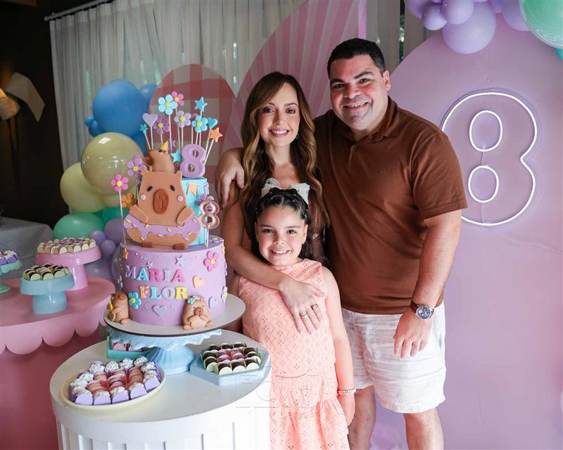Olga e Eugênio Vasques reuniram familiares e amigos, no endereço do casal, para celebrar o aniversário da filha Maria Flor em uma festa que encantou pela criatividade.