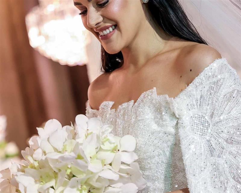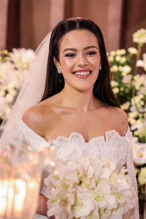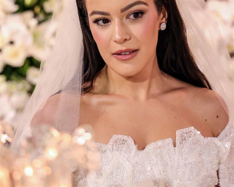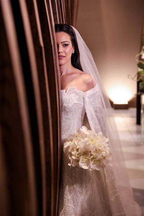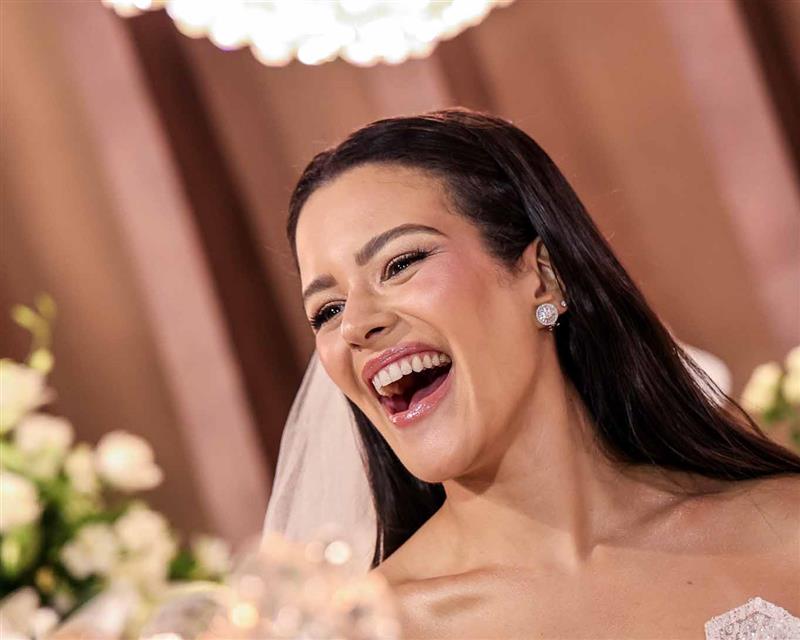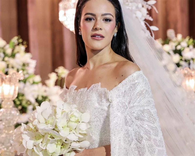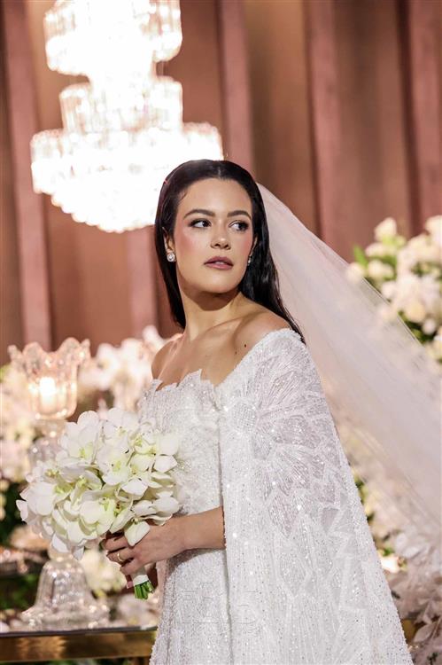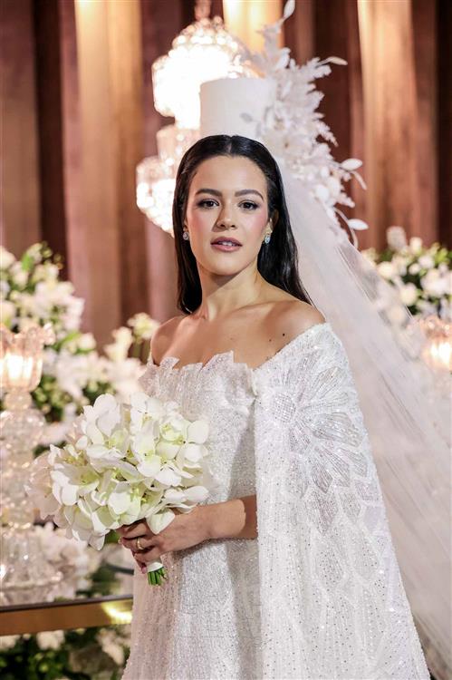 A noiva foi um capítulo à parte: deslumbrante, Giovanna surgiu com vestido de Júnior Santaella, make de Lays Brunelli e buquê de Tomoe Flores. Um frisson absoluto!