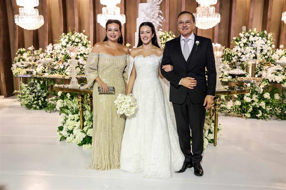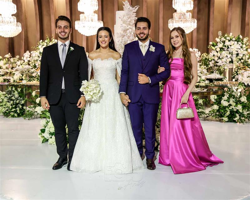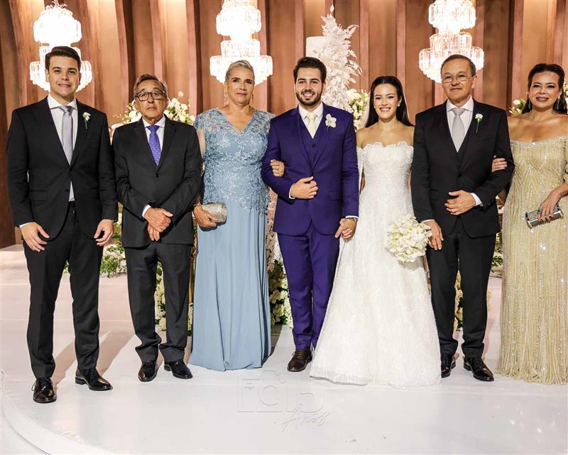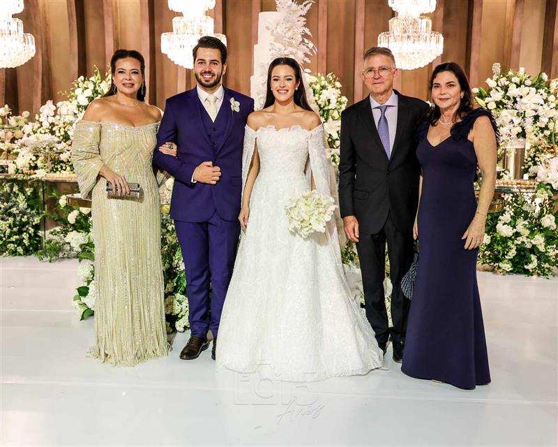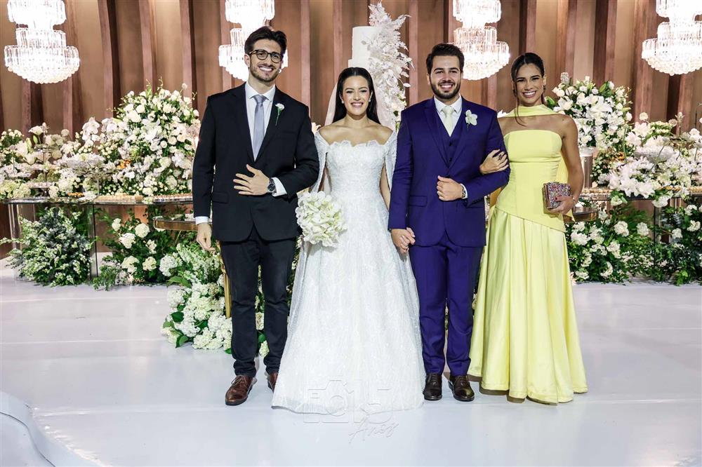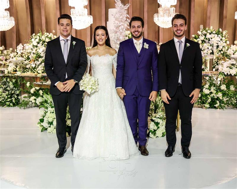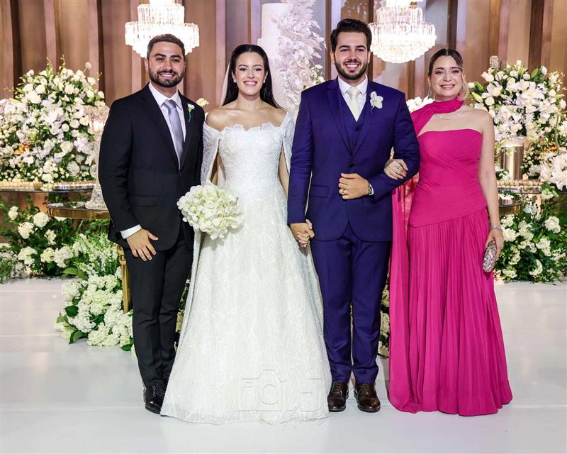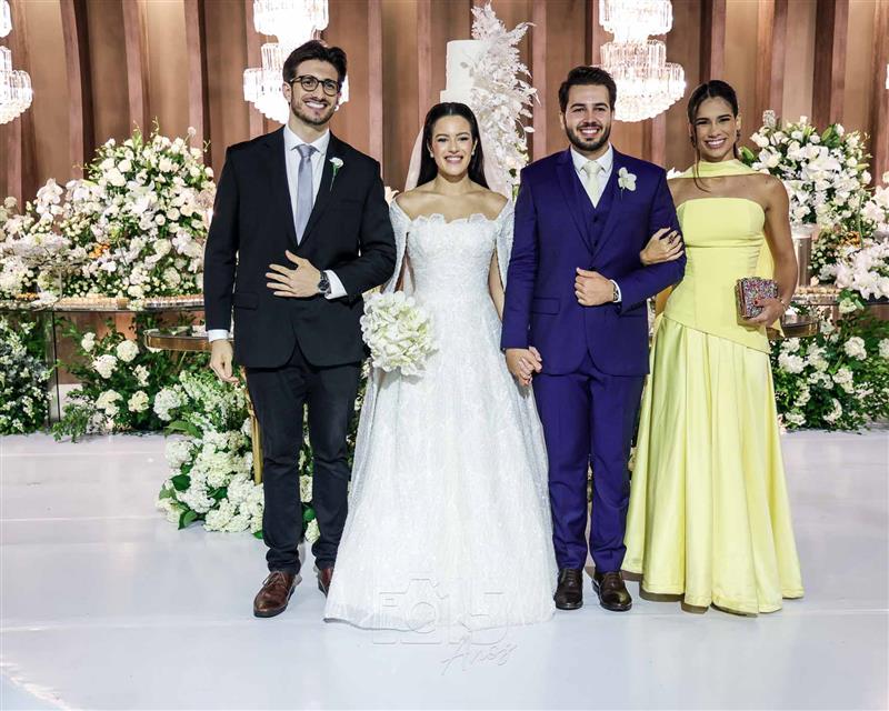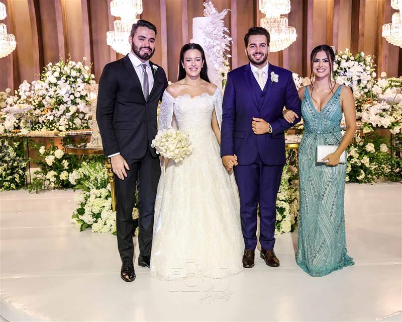 A cerimônia foi embalada pelas interpretações emocionantes de Paulo Benevides e do Maestro Poty, que deram o tom solene e inesquecível ao momento do altar. Já na recepção, o clima foi de celebração continua com um line-up de peso: Luís Marcelo e Gabriel, Paduo, Giovana Bezerra, DJ Thiago Camargo, Xandynho Diferenciado e Banda Jammil, que mantiveram a pista agitada do início ao fim.