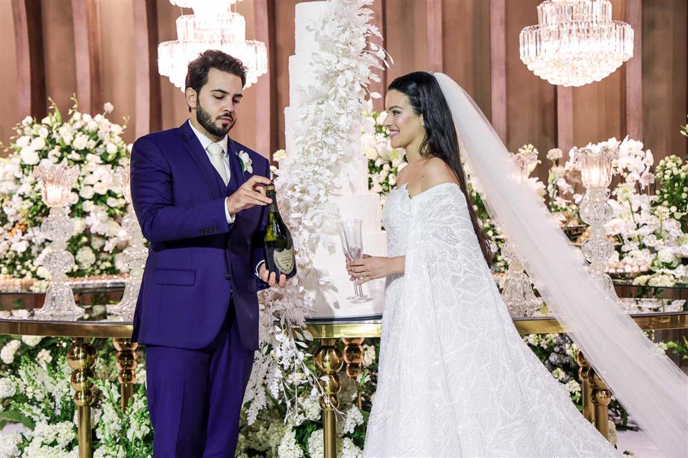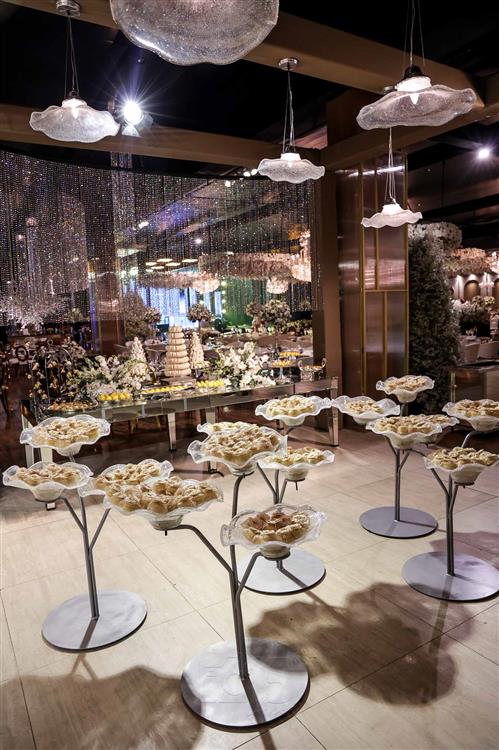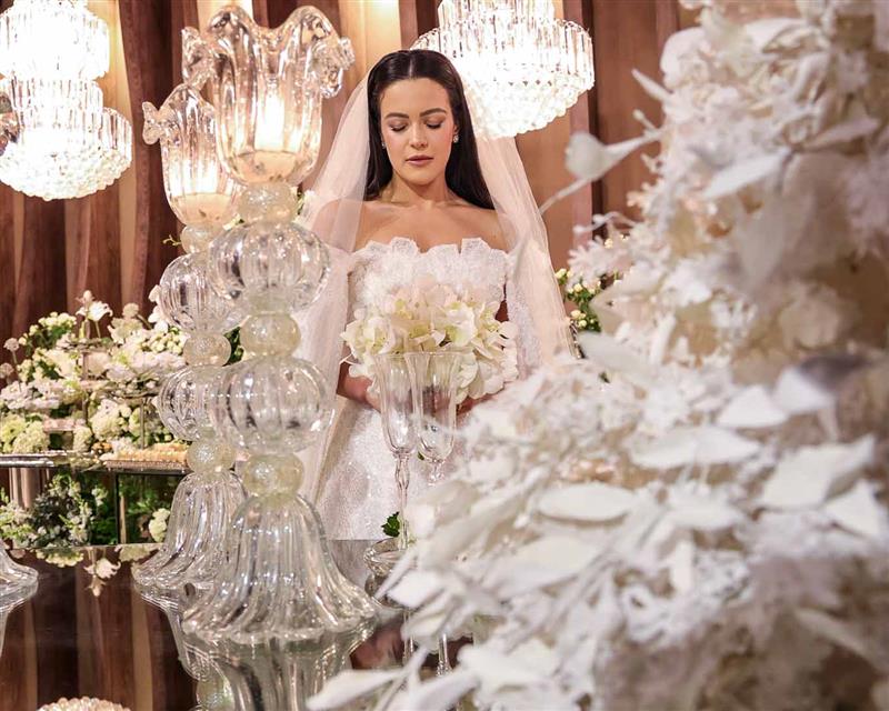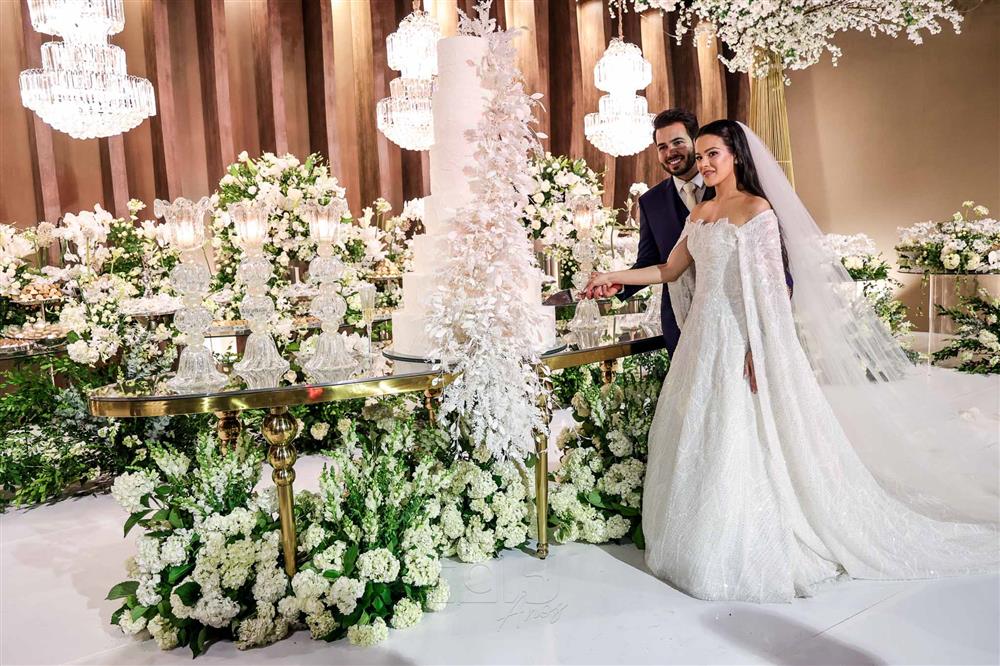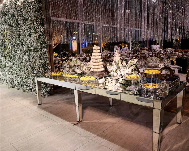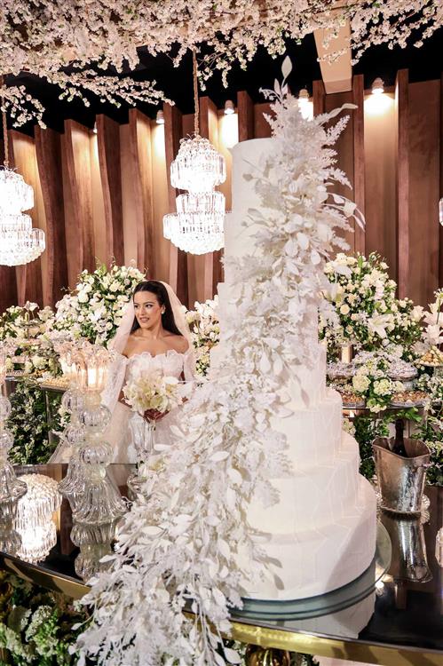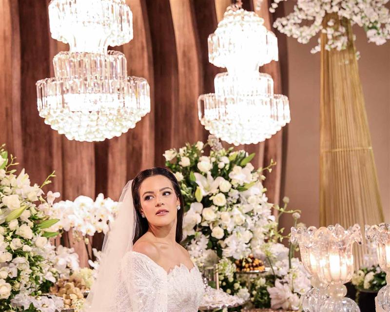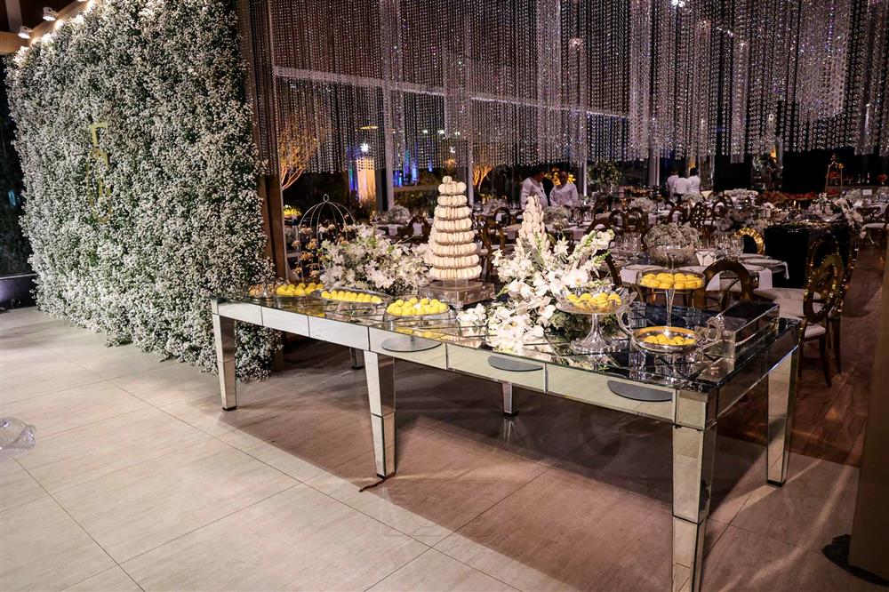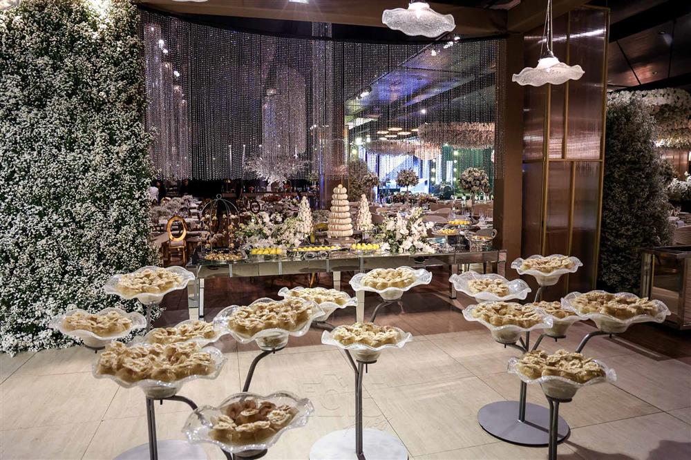 Ainda entre os destaques: decoração assinada por Jacqueline Kato, um espetáculo visual que traduziu luxo, bom gosto e harmonia, em sintonia perfeita com o bolo da Cacau 2 You, os doces da Petite Fleur Patisserie, os tradicionais bem-casados do La Maison e a elegante mesa posta da Vila Eliza, compondo uma estética irretocável.