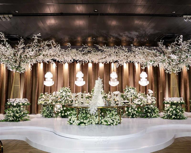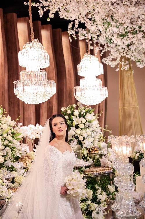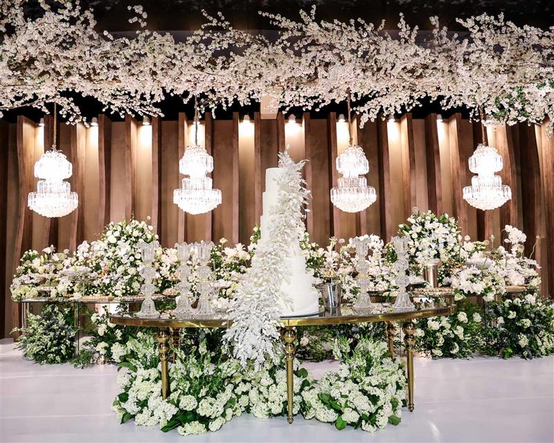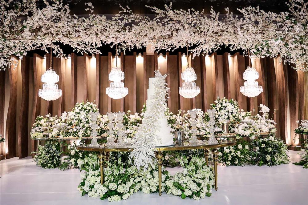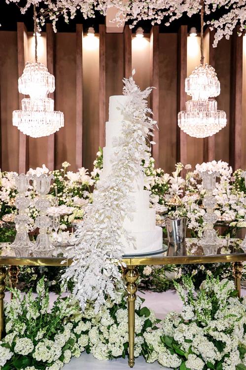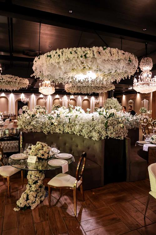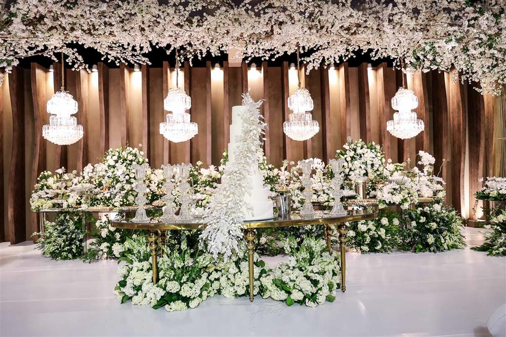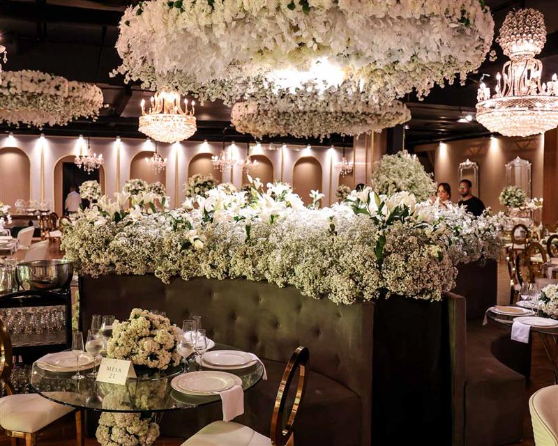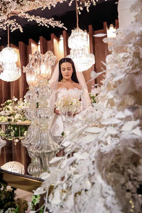 Ainda entre os destaques: decoração assinada por Jacqueline Kato, um espetáculo visual que traduziu luxo, bom gosto e harmonia, em sintonia perfeita com o bolo da Cacau 2 You, os doces da Petite Fleur Patisserie, os tradicionais bem-casados do La Maison e a elegante mesa posta da Vila Eliza, compondo uma estética irretocável.