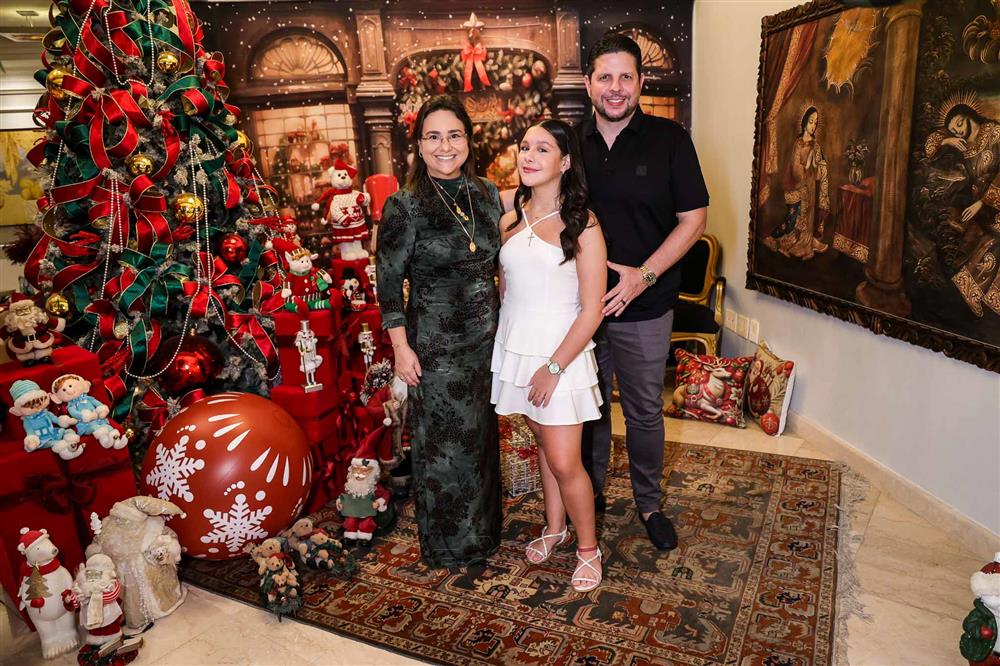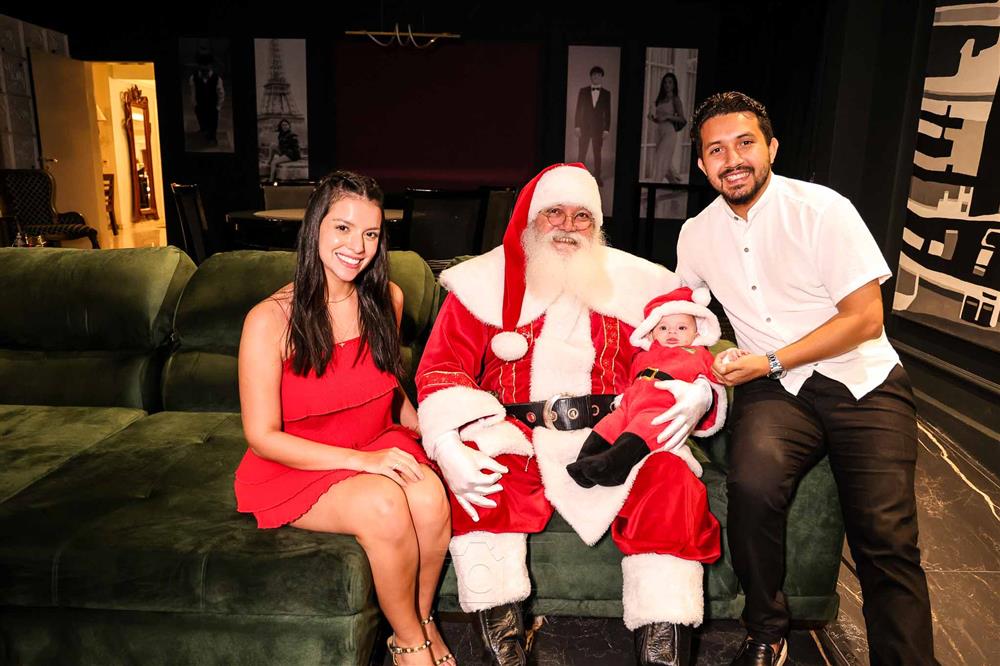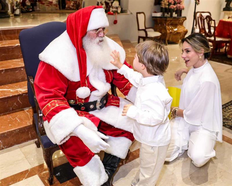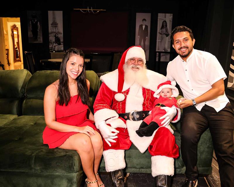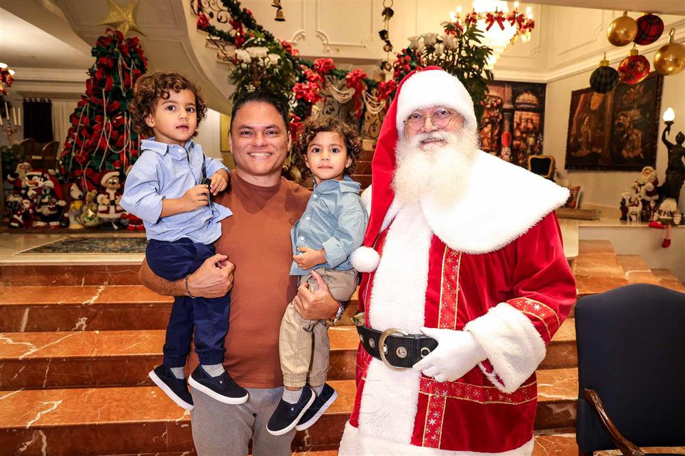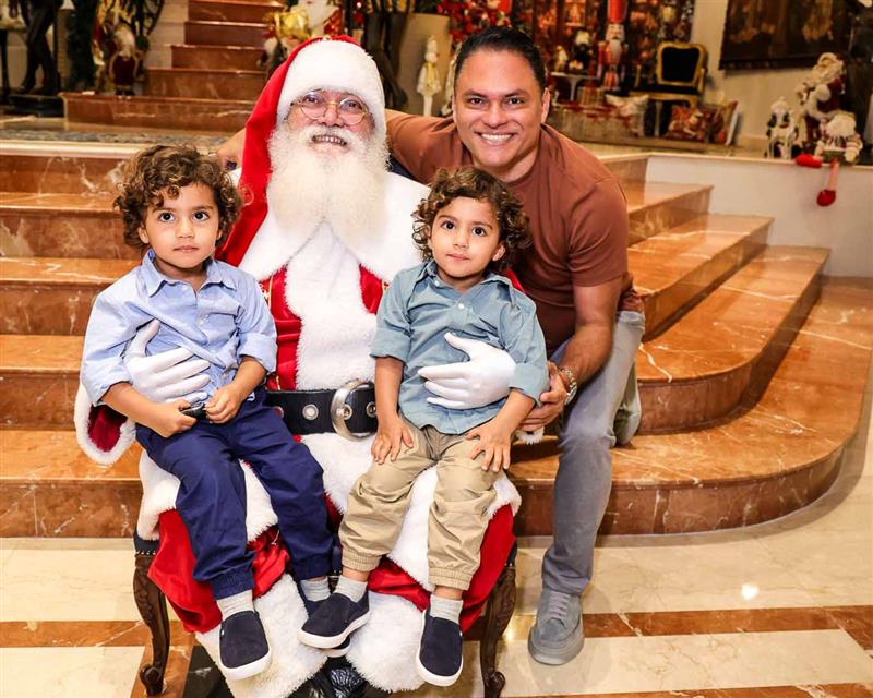 A magia se fez presente com a chegada do Papai Noel, responsável por encantar e arrancar os mais sinceros sorrisos dos netos Miguel Dias Neto, Maria Eduarda Silva e Vitor Filho. Um frisson daqueles!