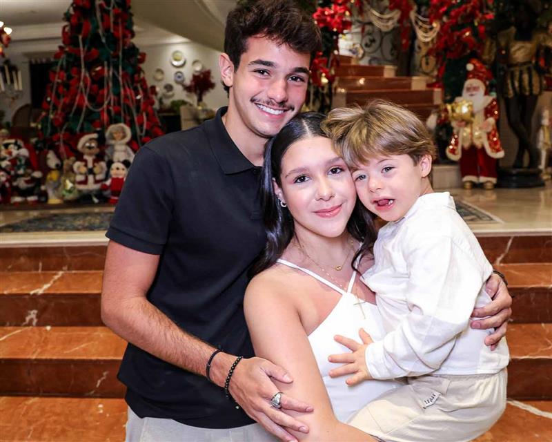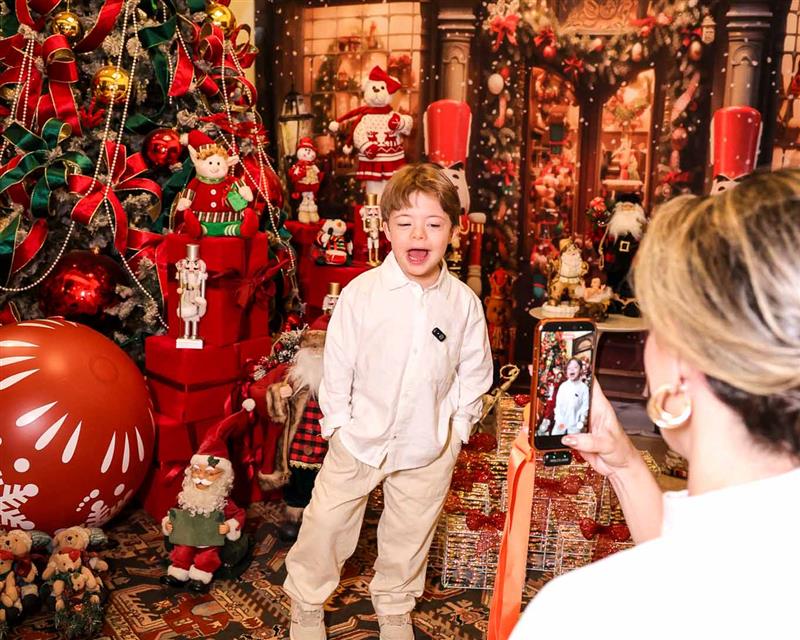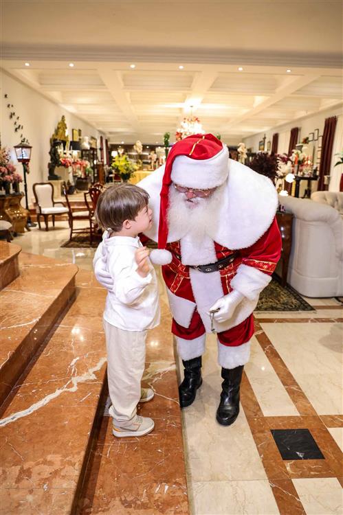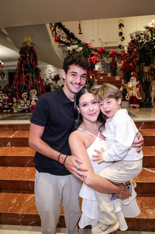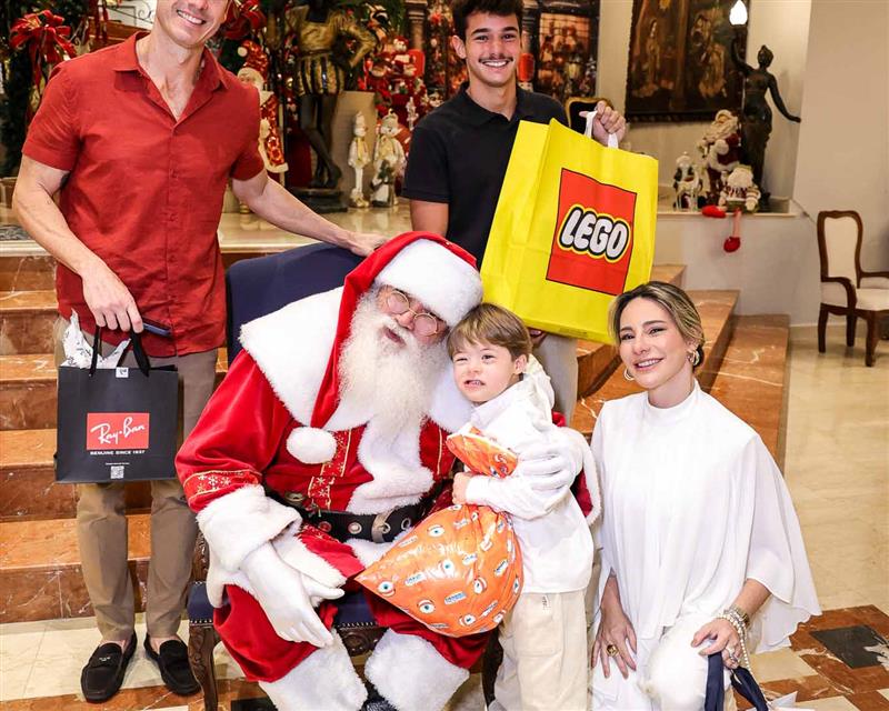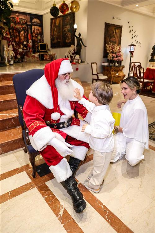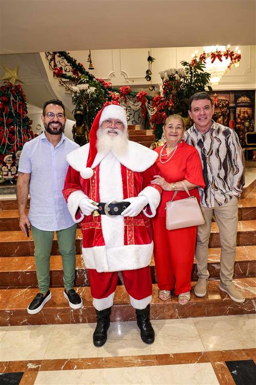 A magia se fez presente com a chegada do Papai Noel, responsável por encantar e arrancar os mais sinceros sorrisos dos netos Miguel Dias Neto, Maria Eduarda Silva e Vitor Filho. Um frisson daqueles!