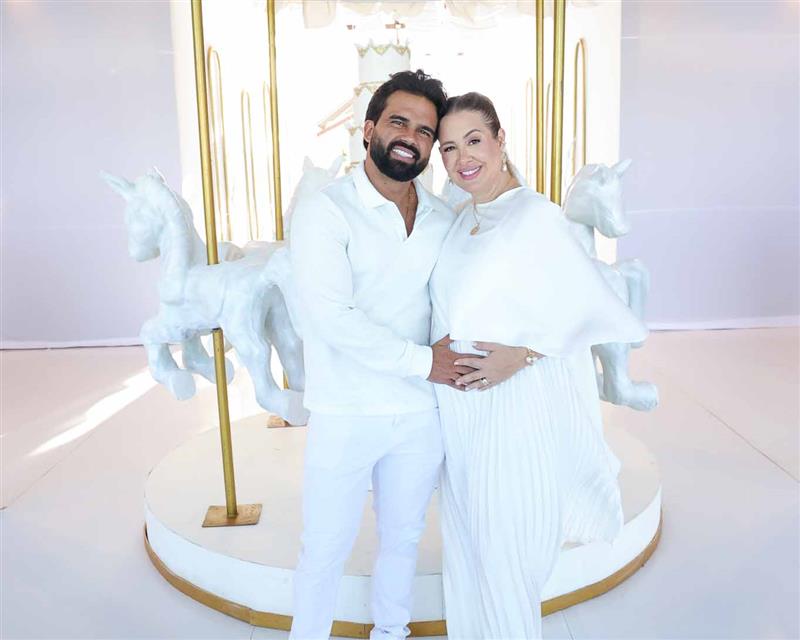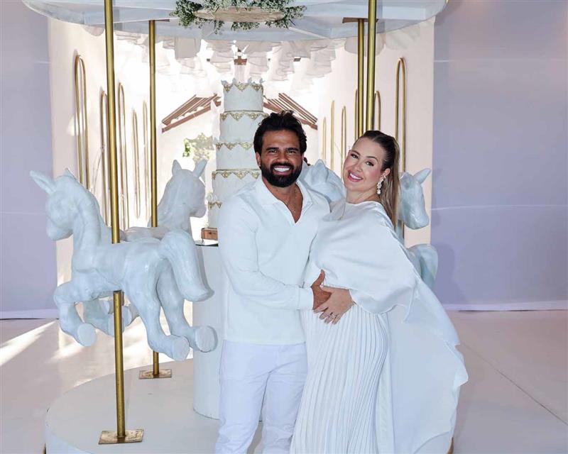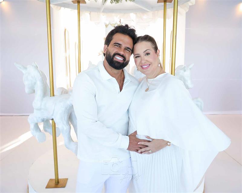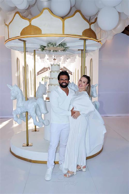 Patrícia Leitte e Lucas Teixeira foram à plena emoção no chá revelação que confirmou que Isaac Lucca vem aí.