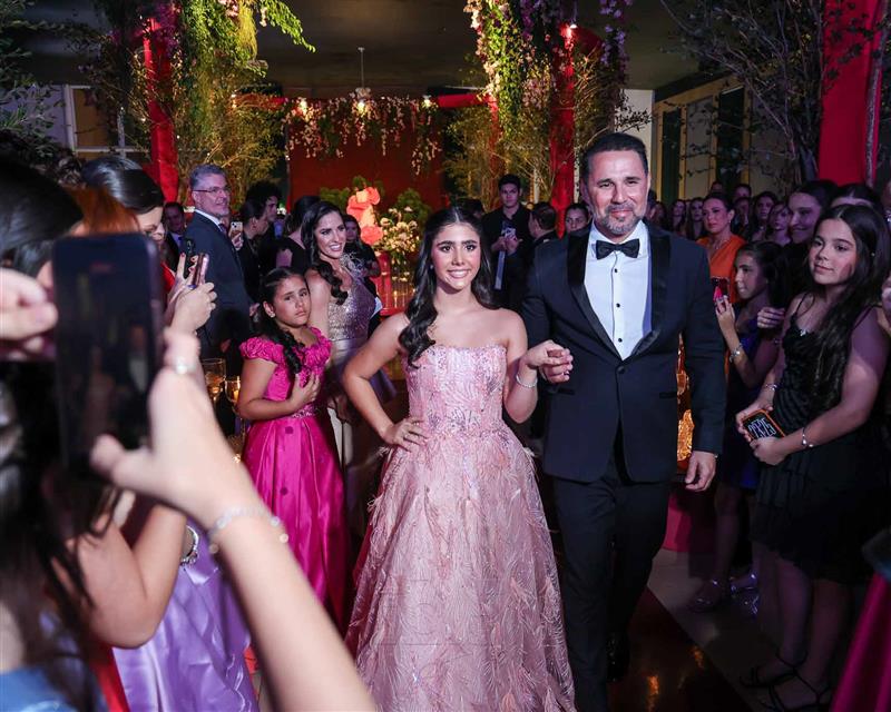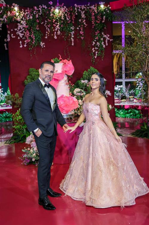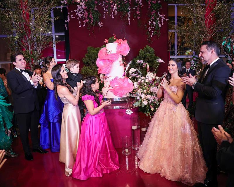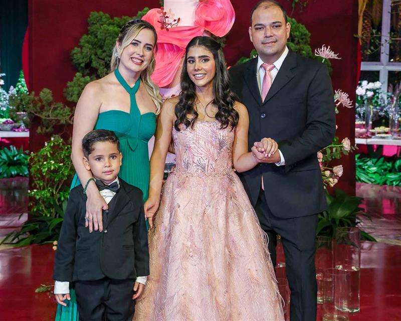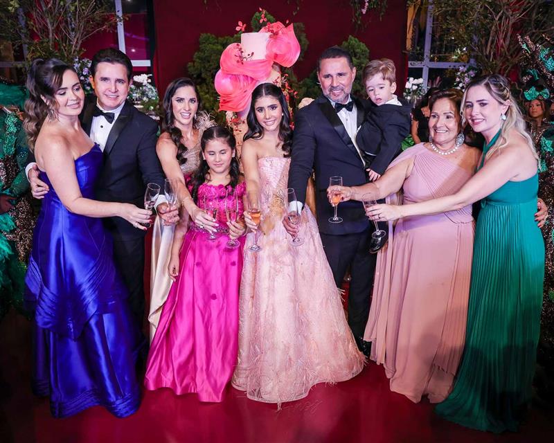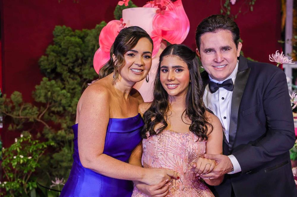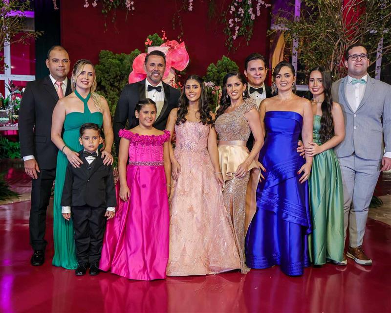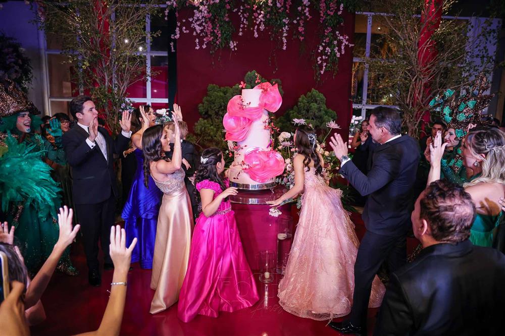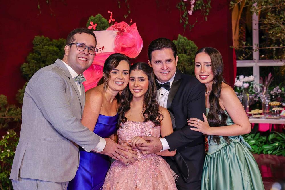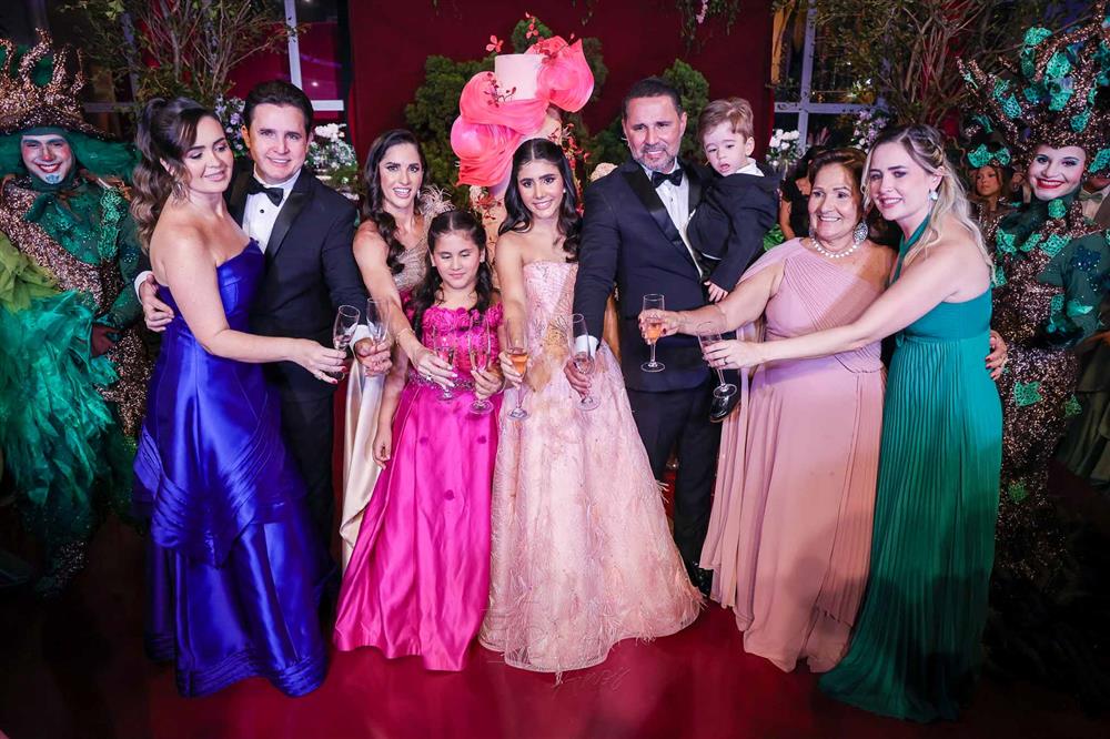 Débora e Giovanni Sá reuniram familiares e amigos para a celebração do baile debutante de Giovanna Sombra, tendo o Alice's Buffet como palco na noite de 14 de março de 2025.
