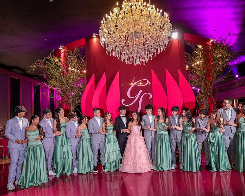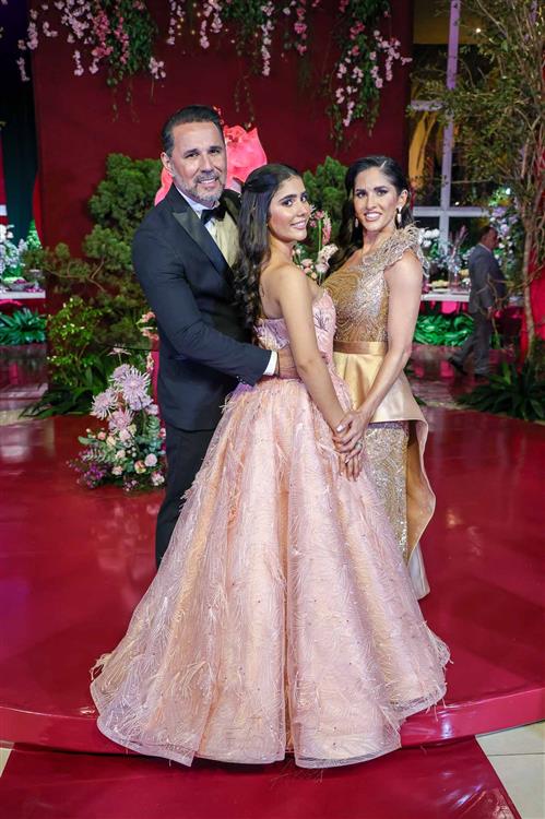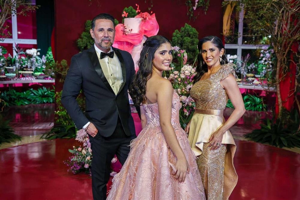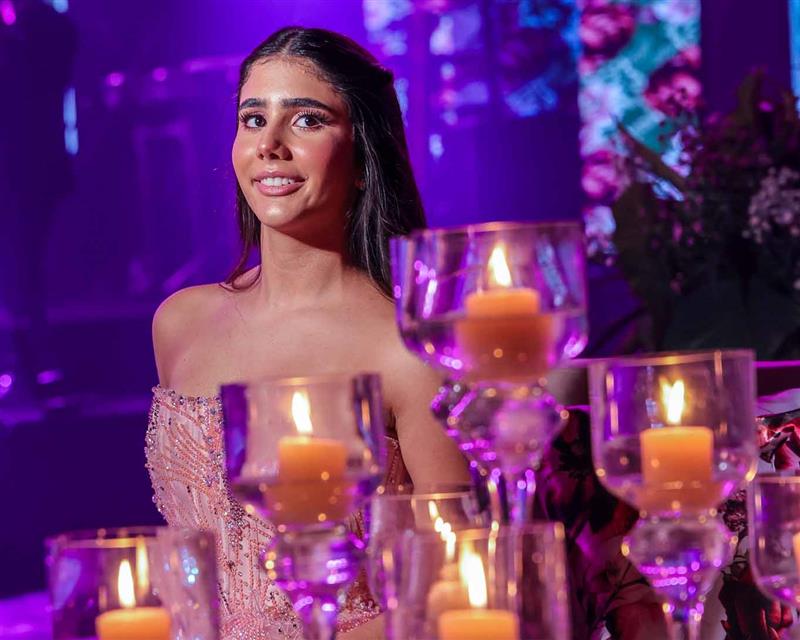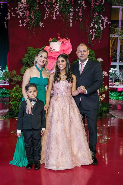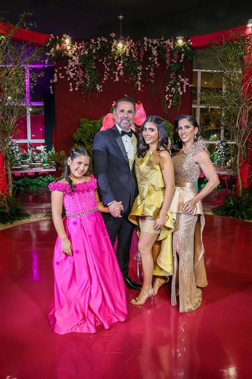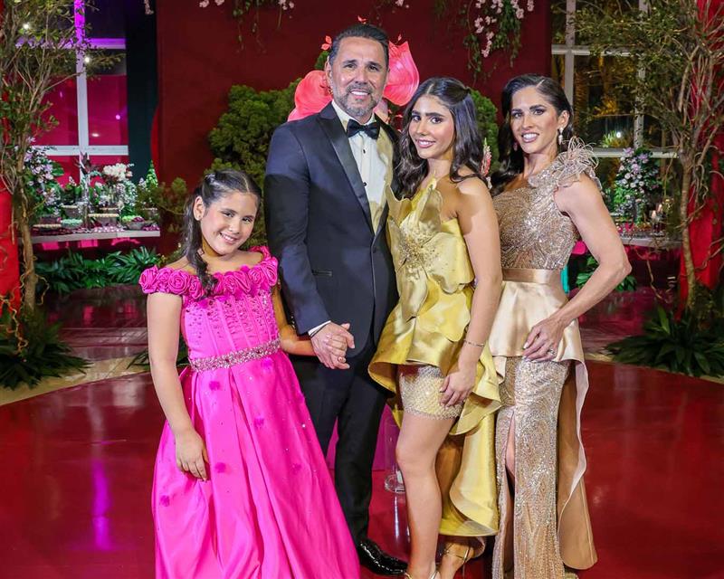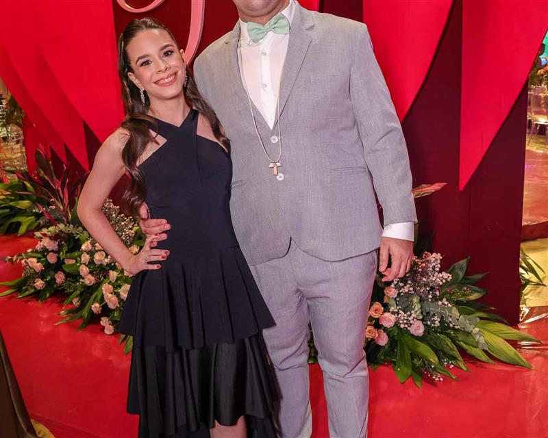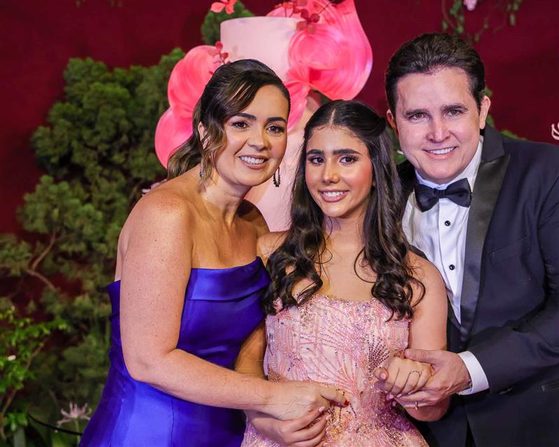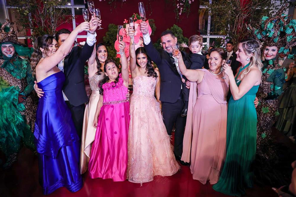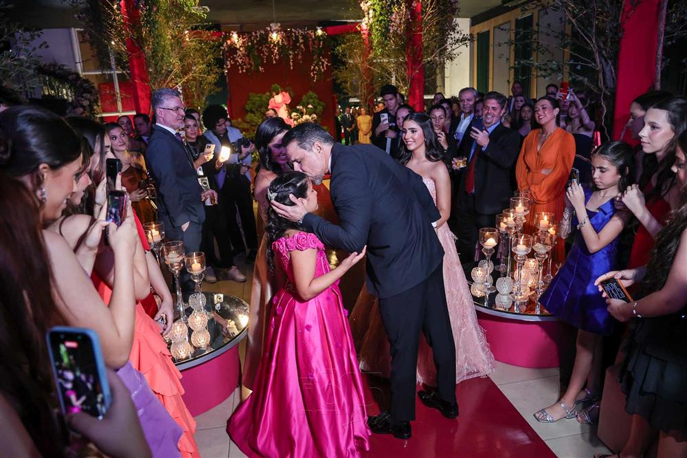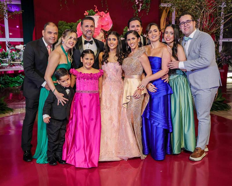 Débora e Giovanni Sá reuniram familiares e amigos para a celebração do baile debutante de Giovanna Sombra, tendo o Alice's Buffet como palco na noite de 14 de março de 2025.