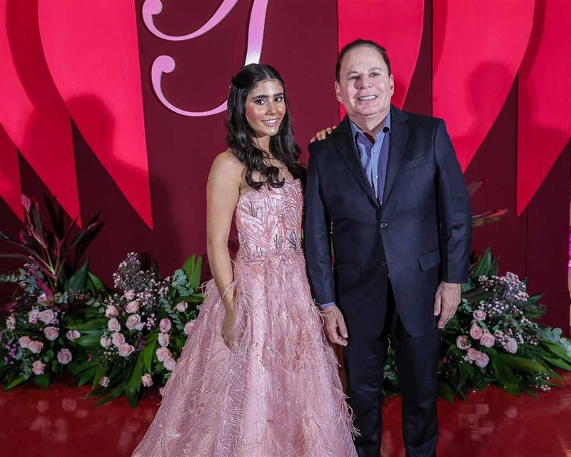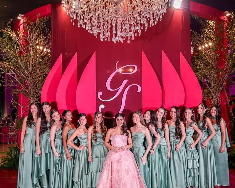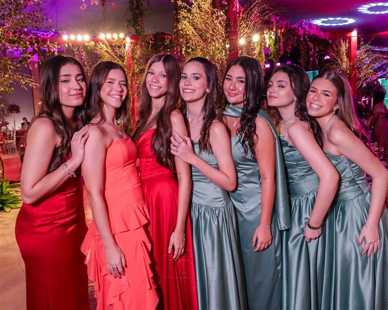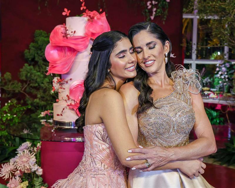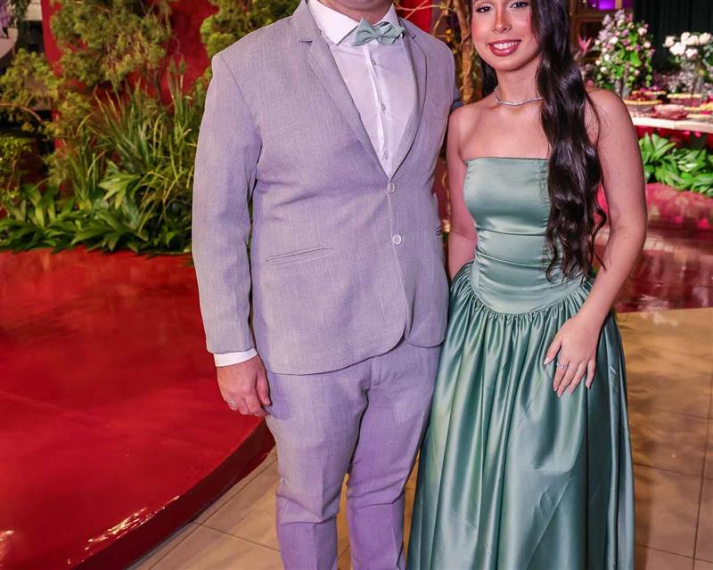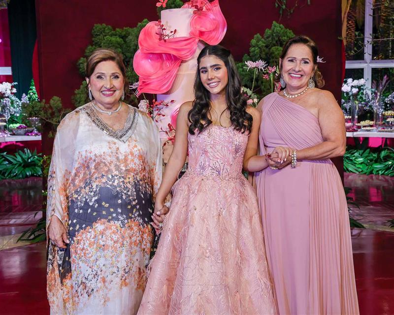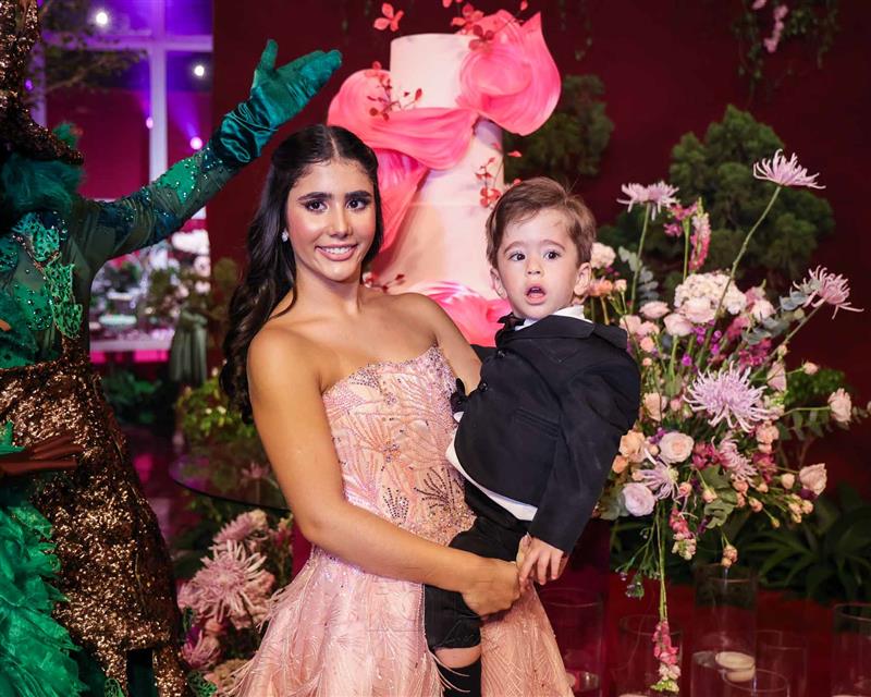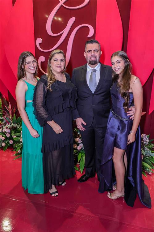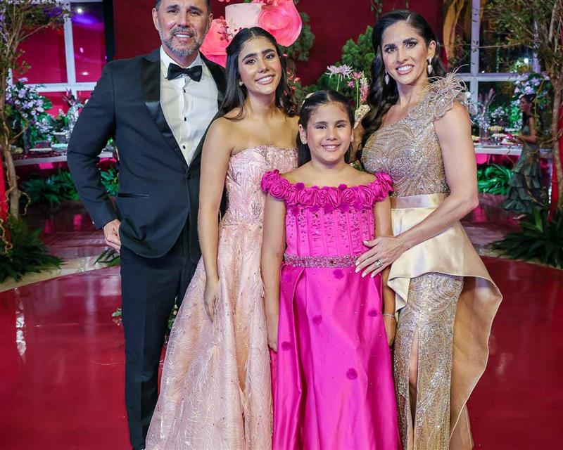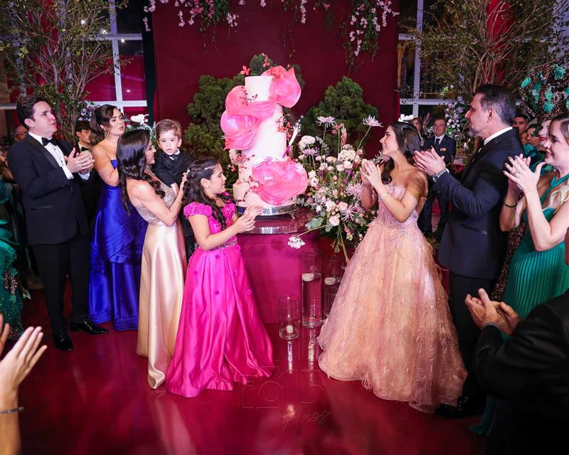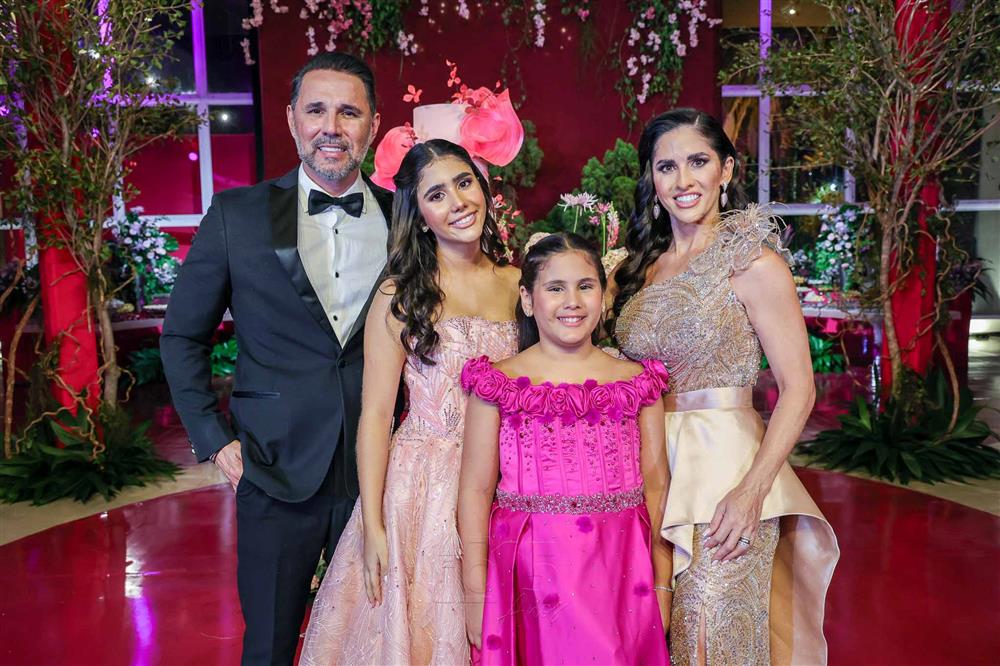 Débora e Giovanni Sá reuniram familiares e amigos para a celebração do baile debutante de Giovanna Sombra, tendo o Alice's Buffet como palco na noite de 14 de março de 2025.