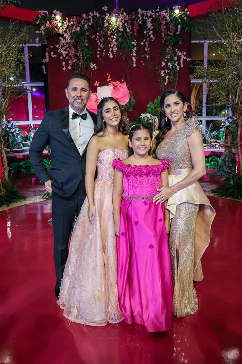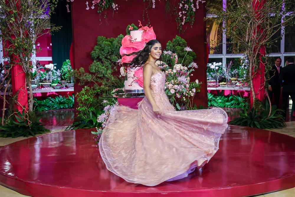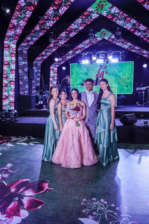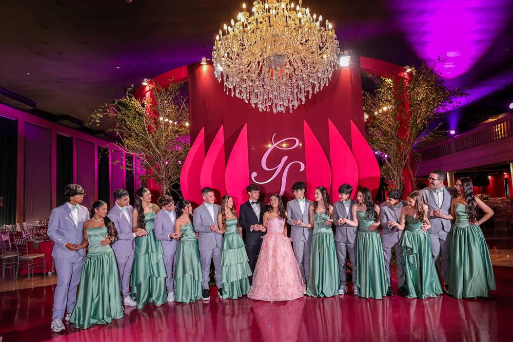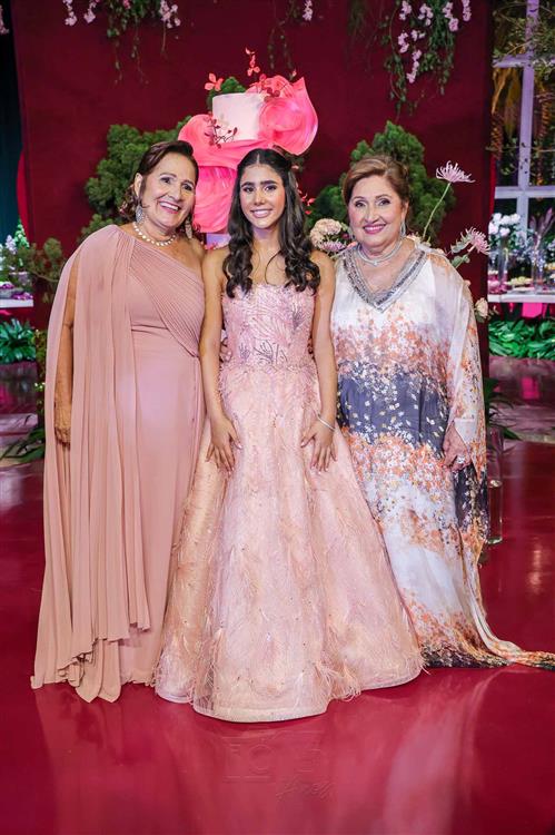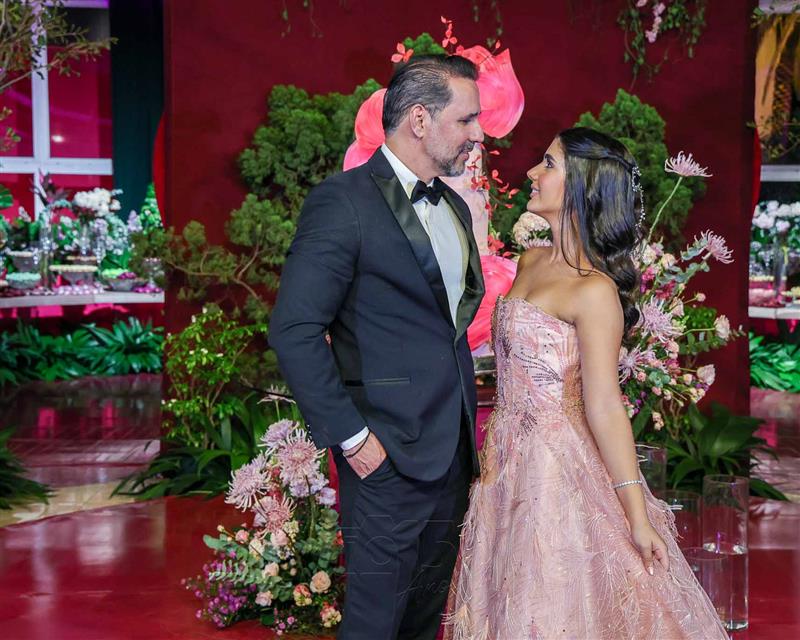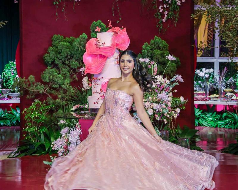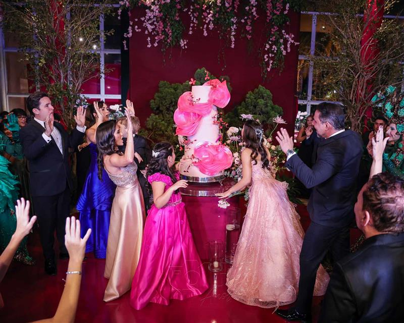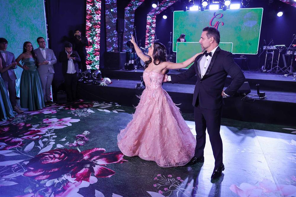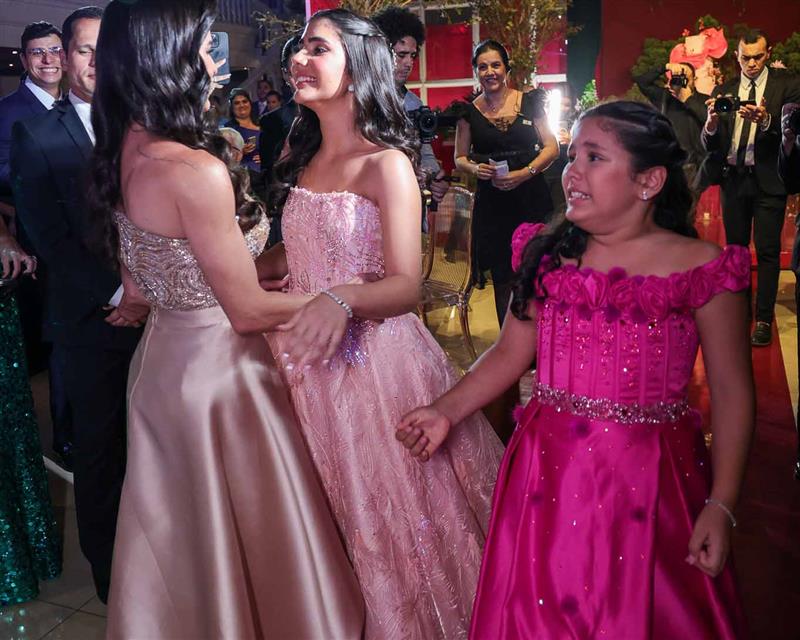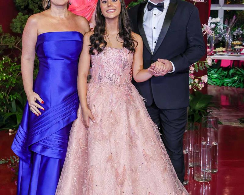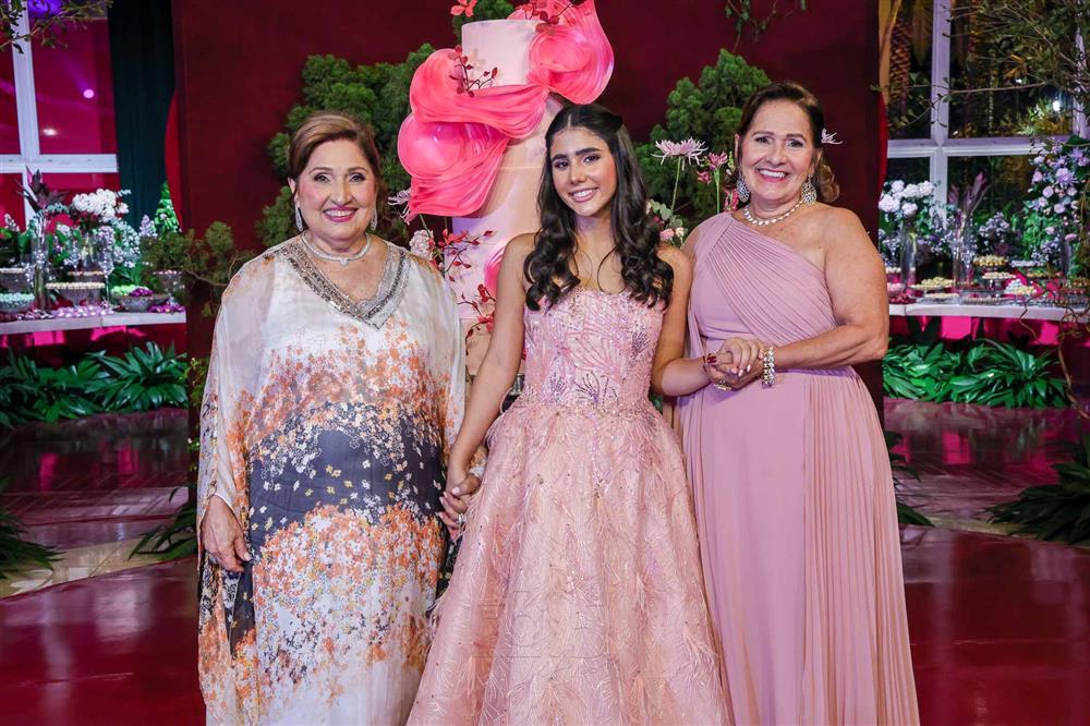 Débora e Giovanni Sá reuniram familiares e amigos para a celebração do baile debutante de Giovanna Sombra, tendo o Alice's Buffet como palco na noite de 14 de março de 2025.