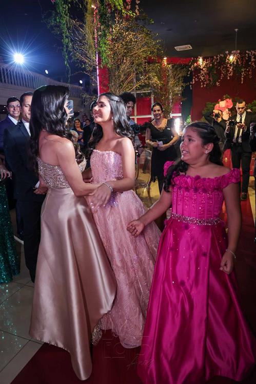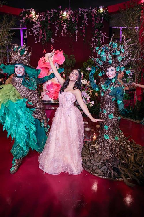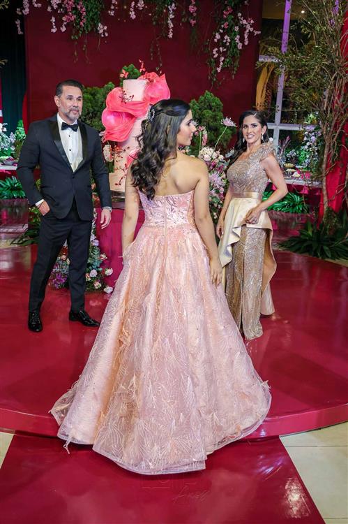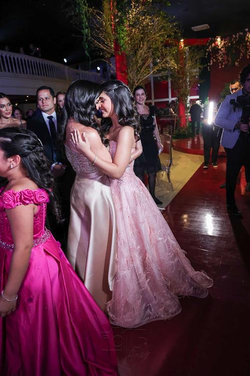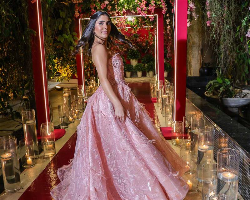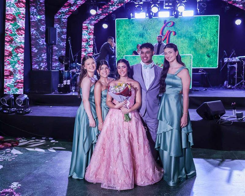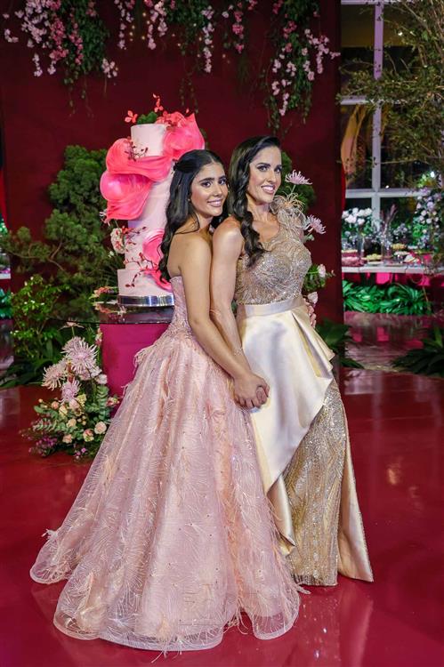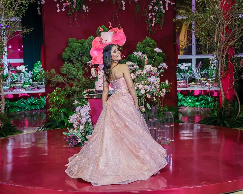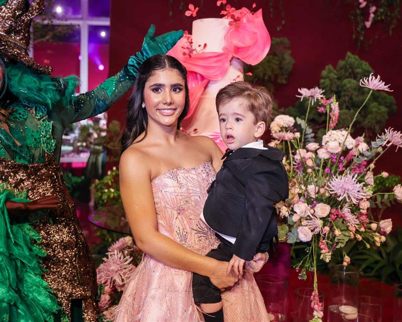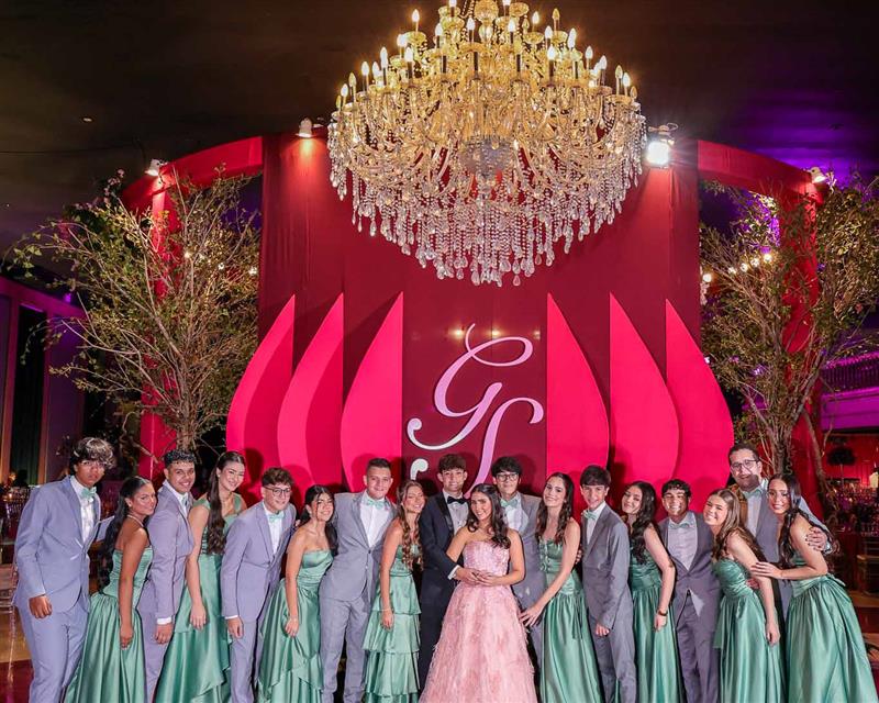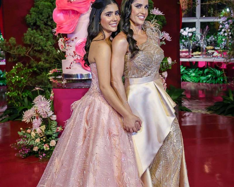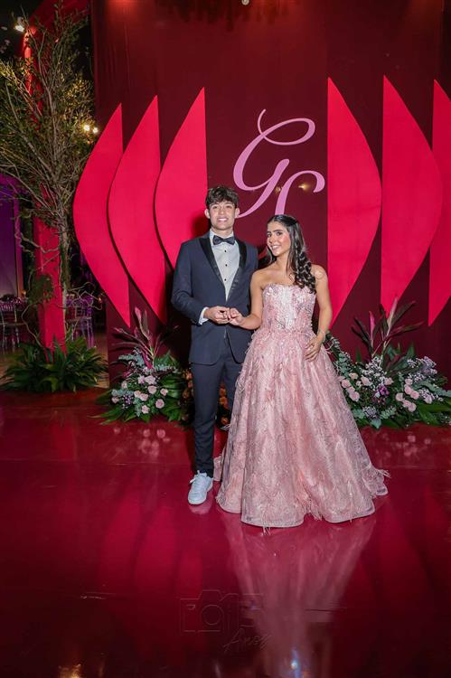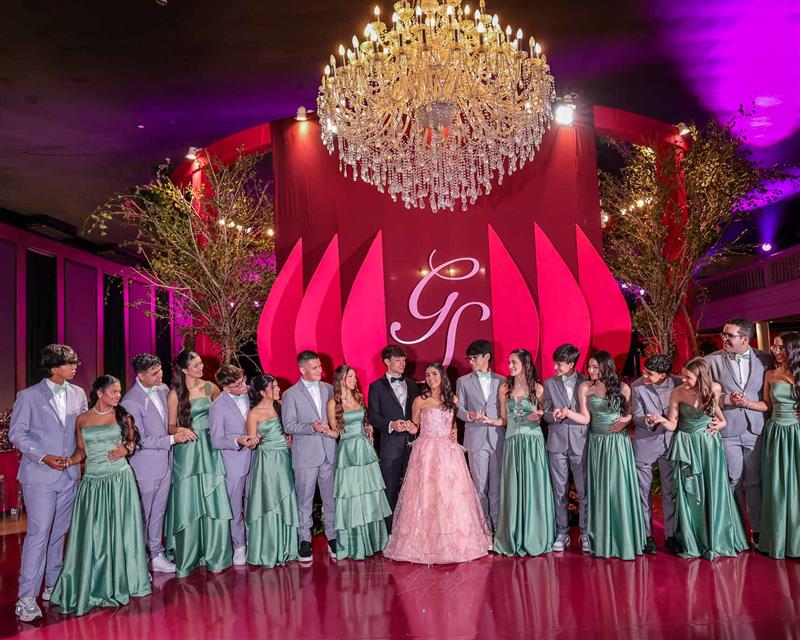 Débora e Giovanni Sá reuniram familiares e amigos para a celebração do baile debutante de Giovanna Sombra, tendo o Alice's Buffet como palco na noite de 14 de março de 2025.