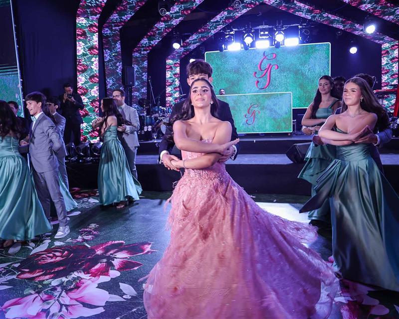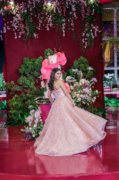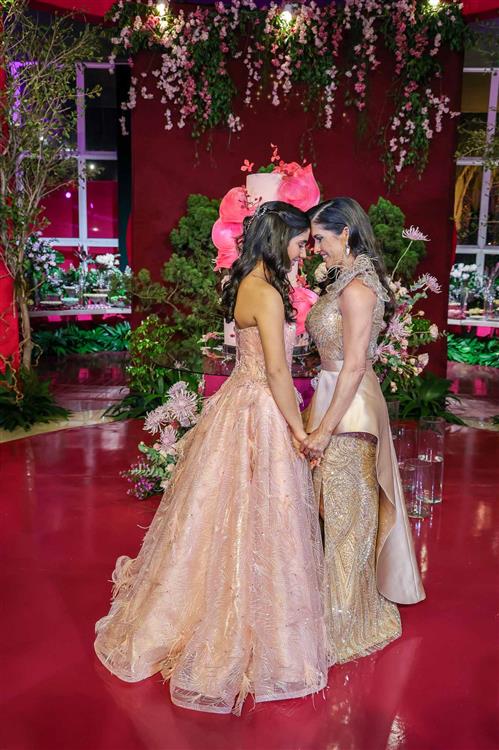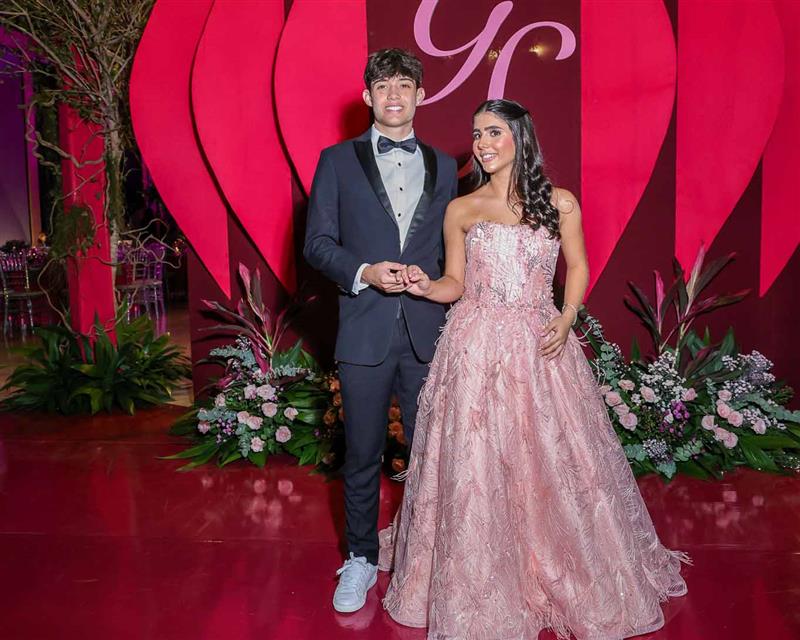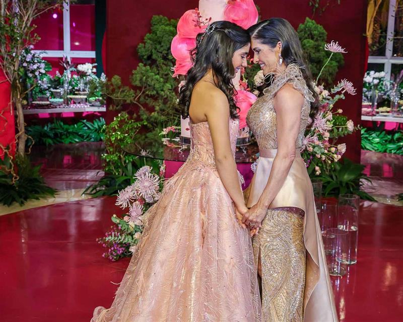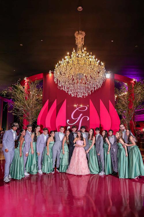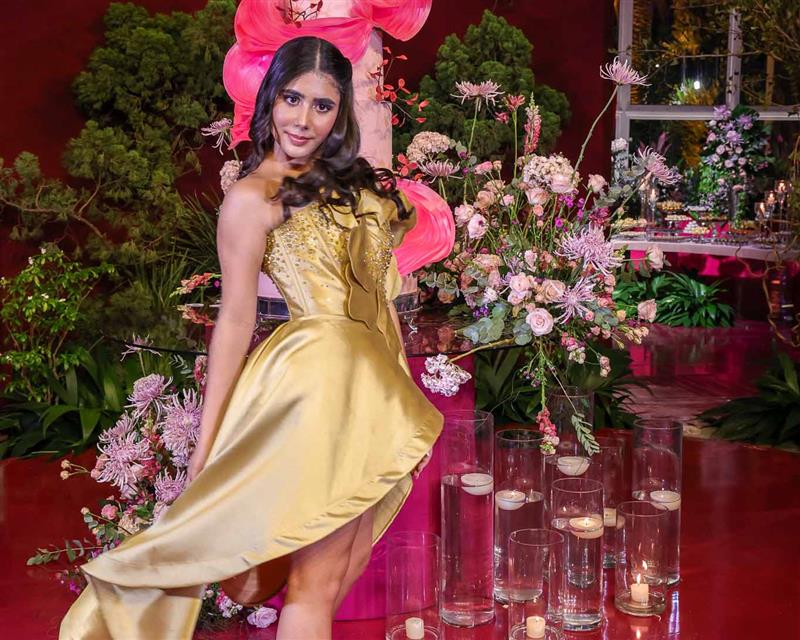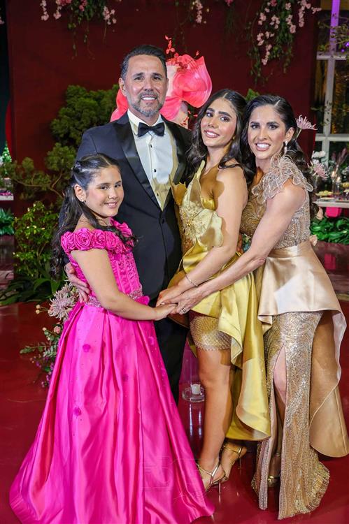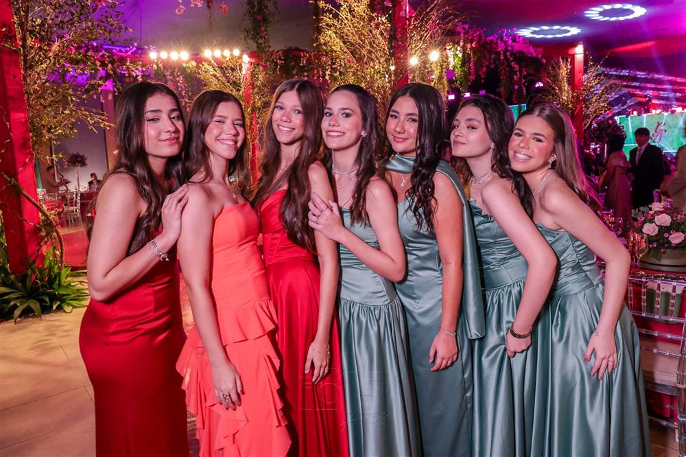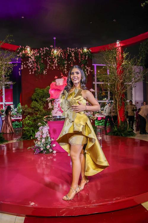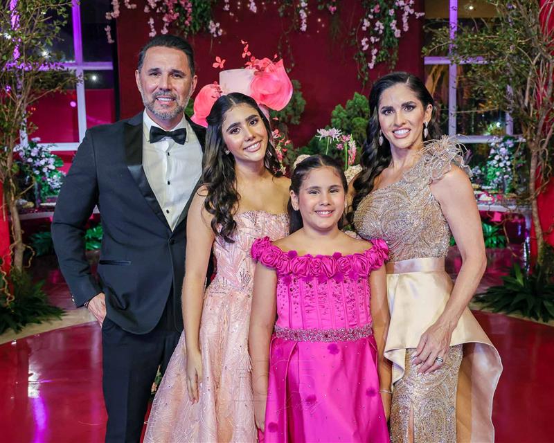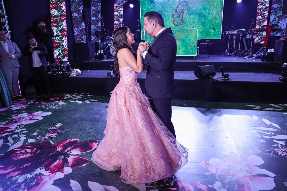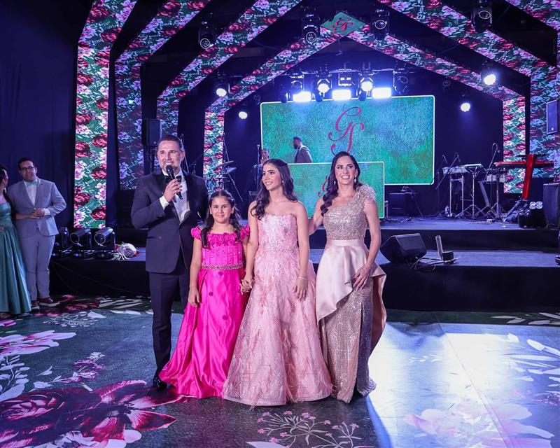 Débora e Giovanni Sá reuniram familiares e amigos para a celebração do baile debutante de Giovanna Sombra, tendo o Alice's Buffet como palco na noite de 14 de março de 2025.