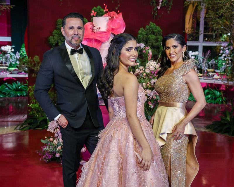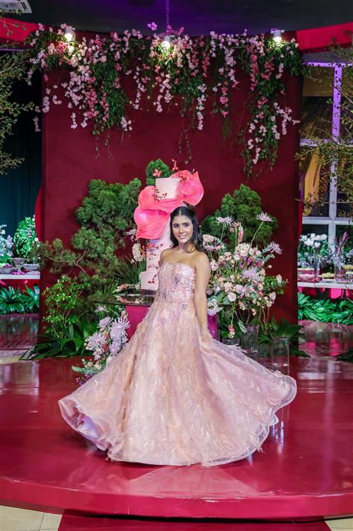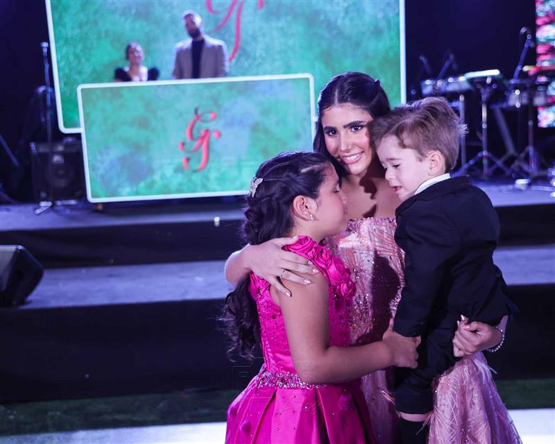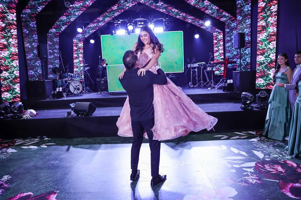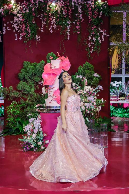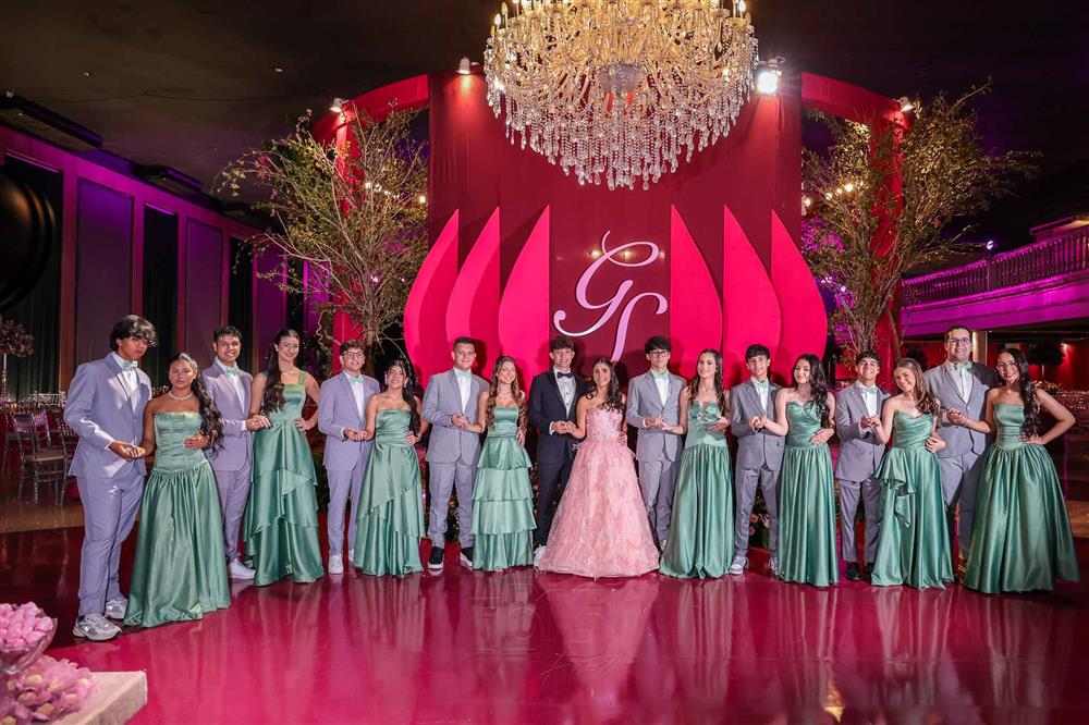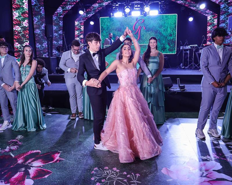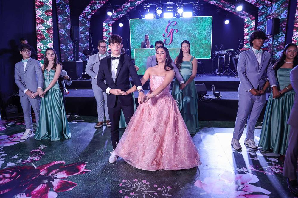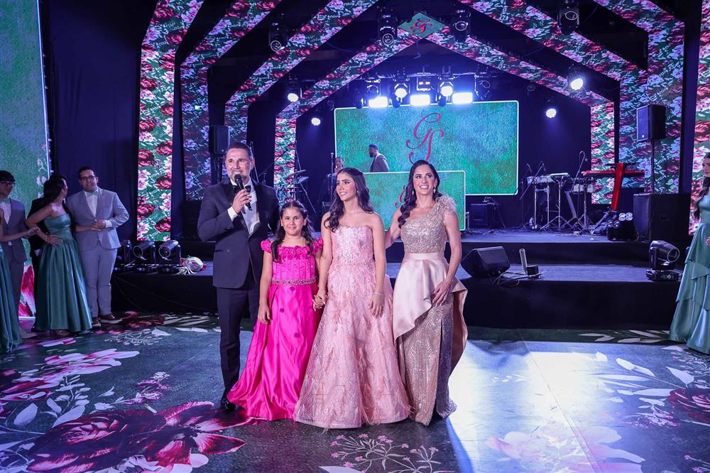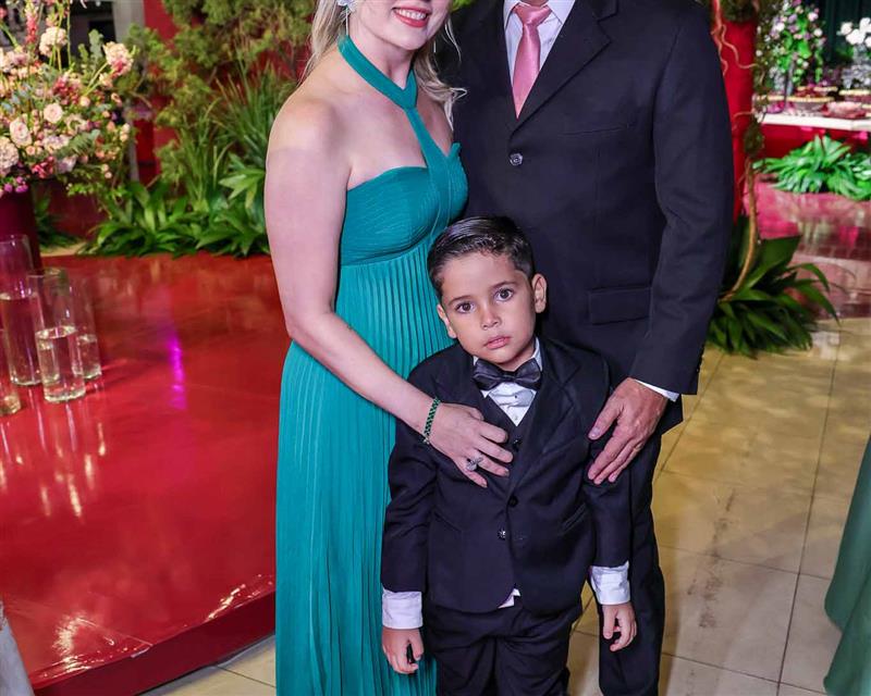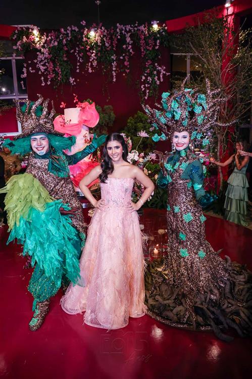 Débora e Giovanni Sá reuniram familiares e amigos para a celebração do baile debutante de Giovanna Sombra, tendo o Alice's Buffet como palco na noite de 14 de março de 2025.