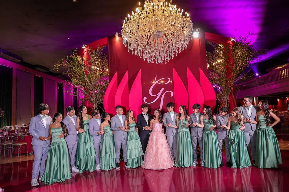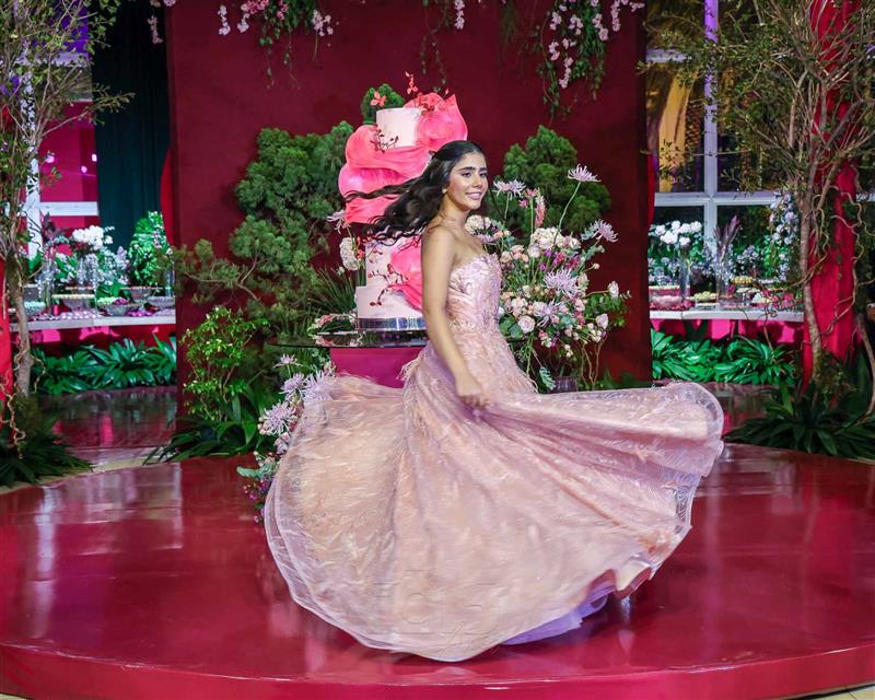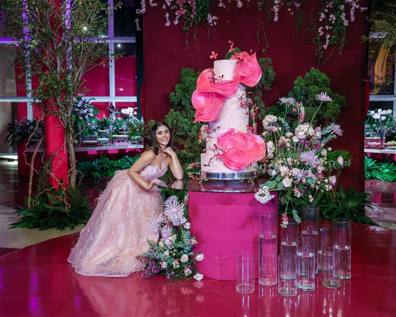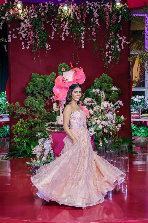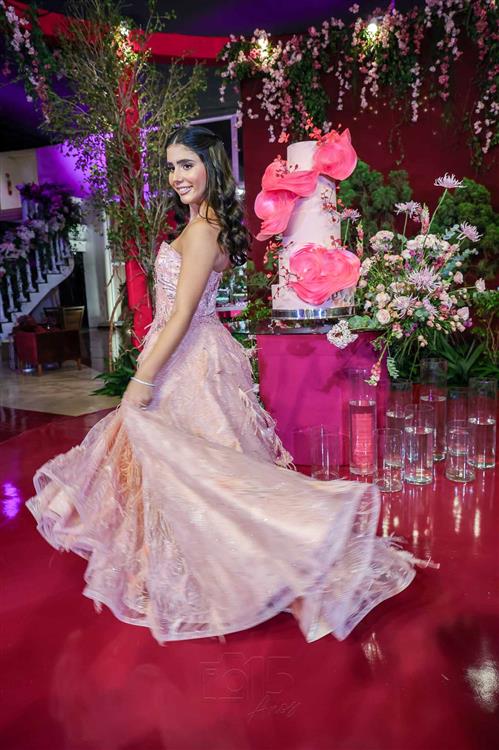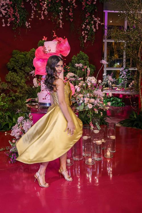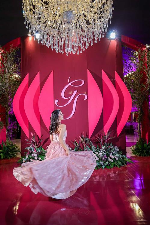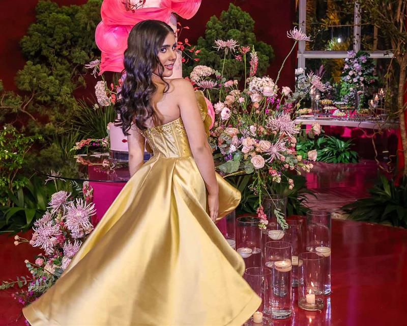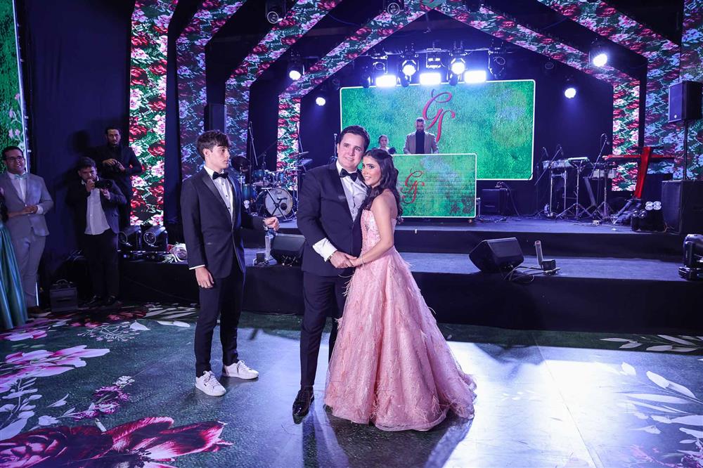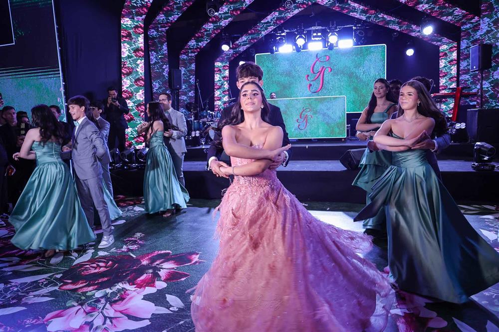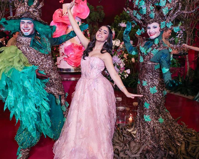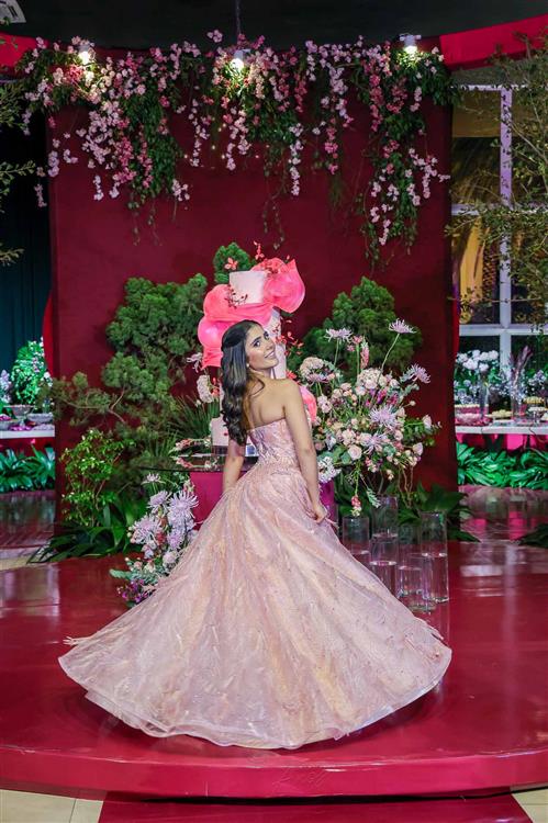 Débora e Giovanni Sá reuniram familiares e amigos para a celebração do baile debutante de Giovanna Sombra, tendo o Alice's Buffet como palco na noite de 14 de março de 2025.