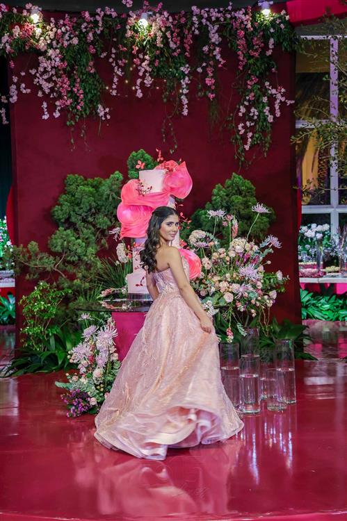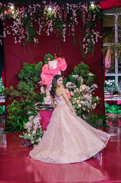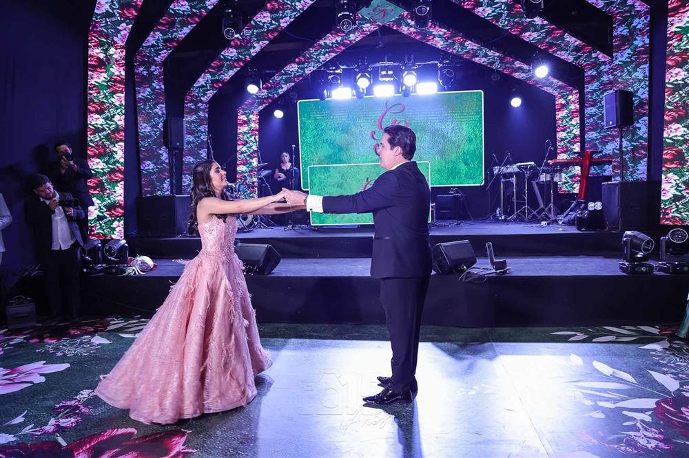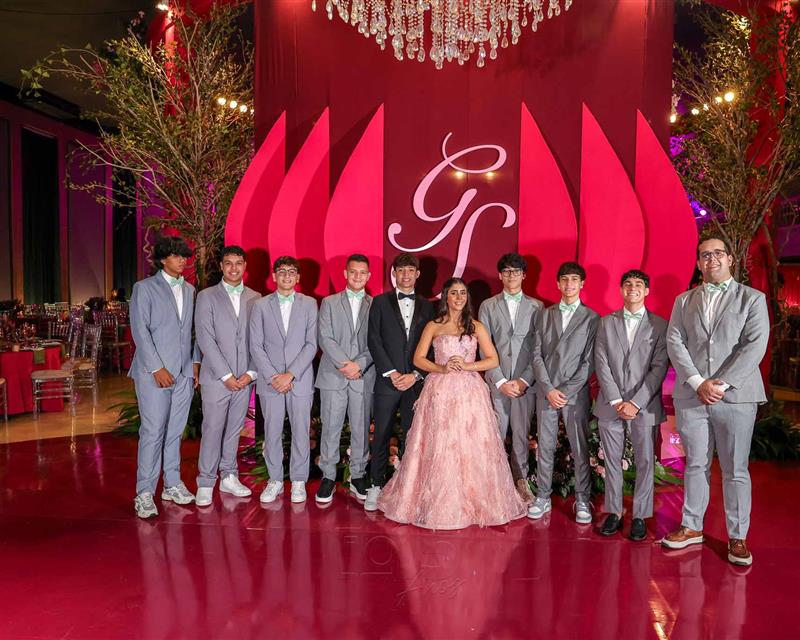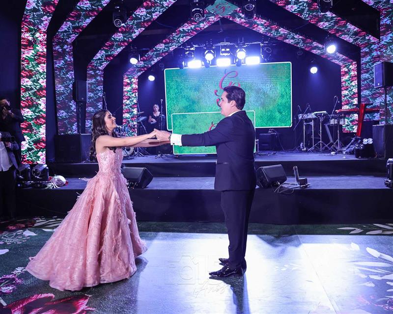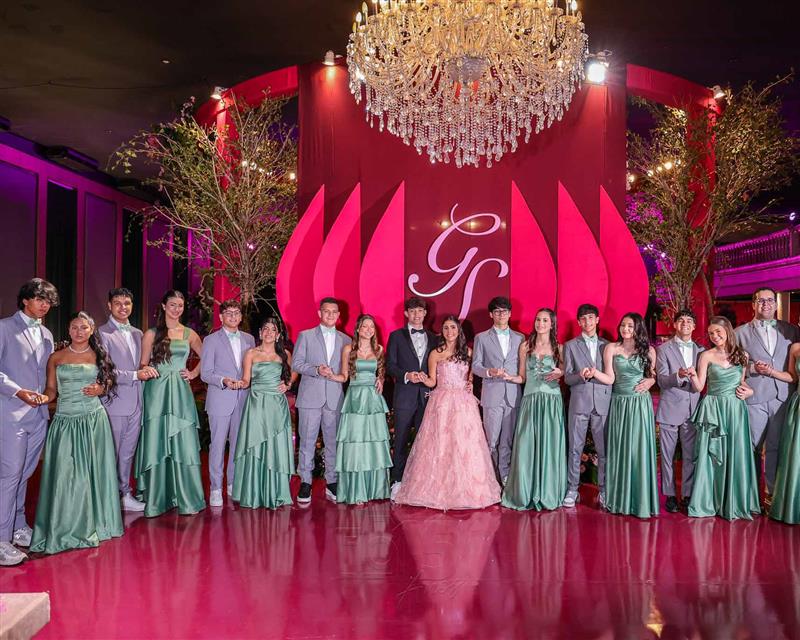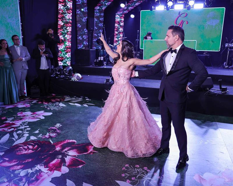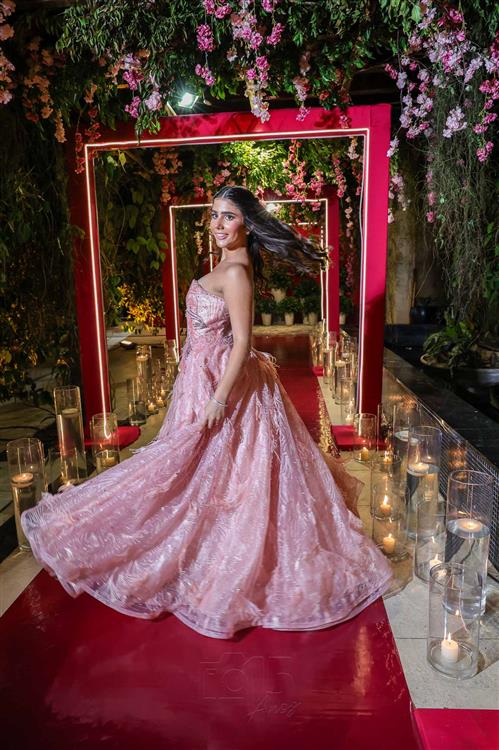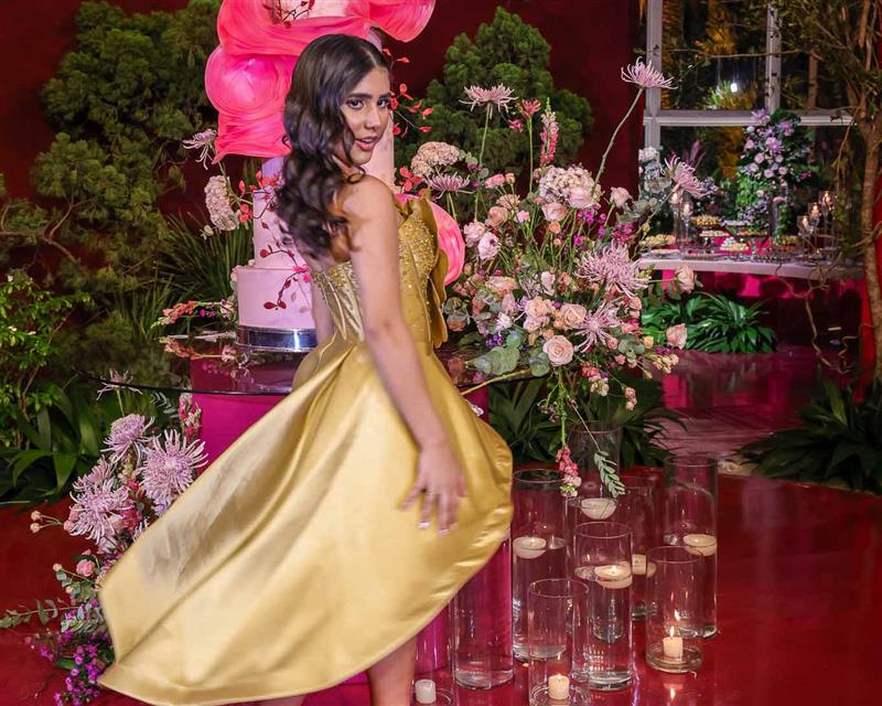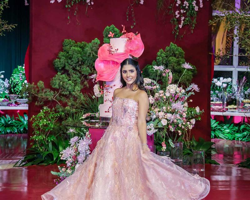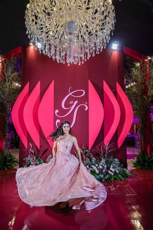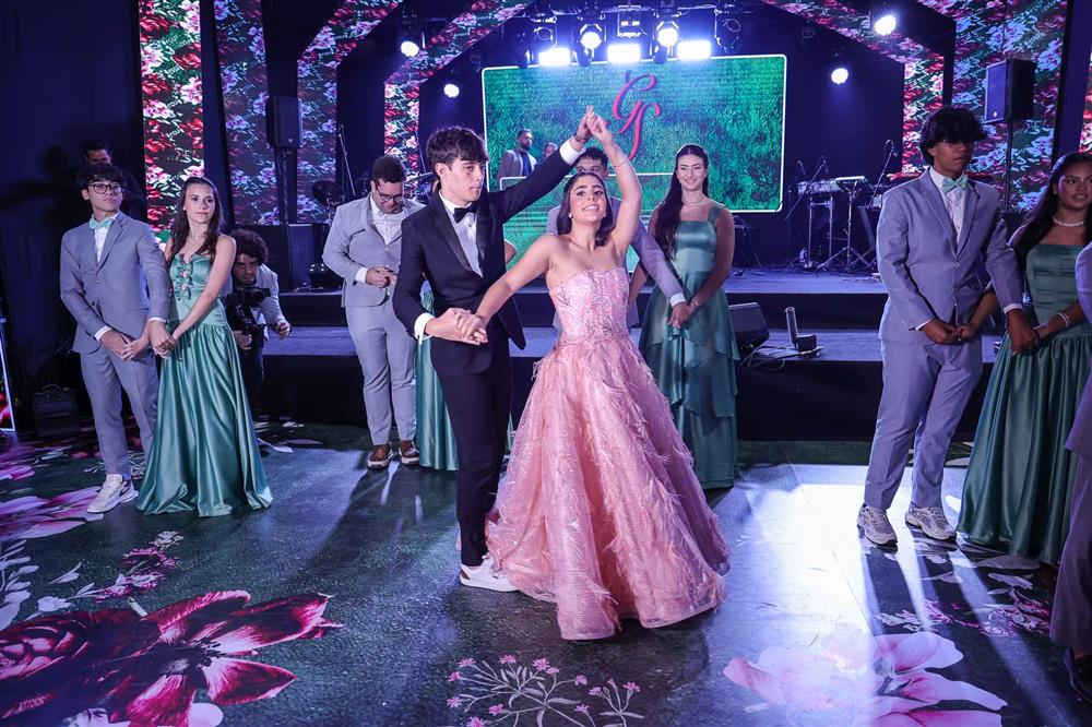 Débora e Giovanni Sá reuniram familiares e amigos para a celebração do baile debutante de Giovanna Sombra, tendo o Alice's Buffet como palco na noite de 14 de março de 2025.