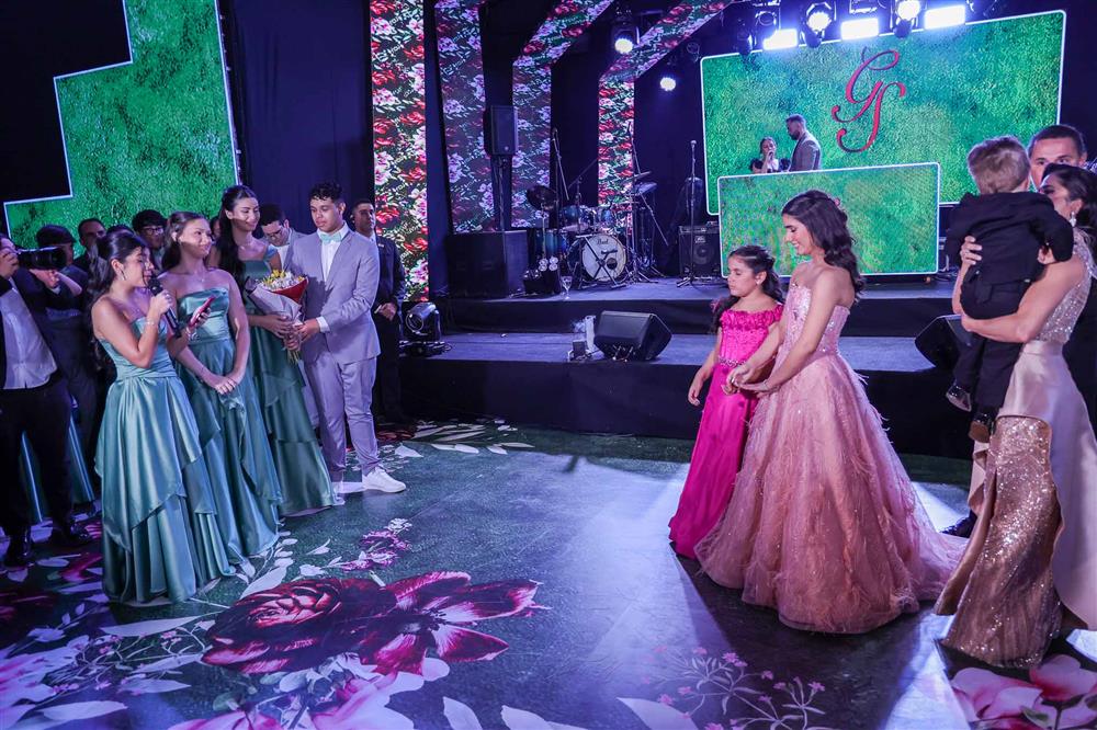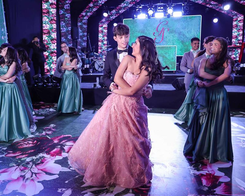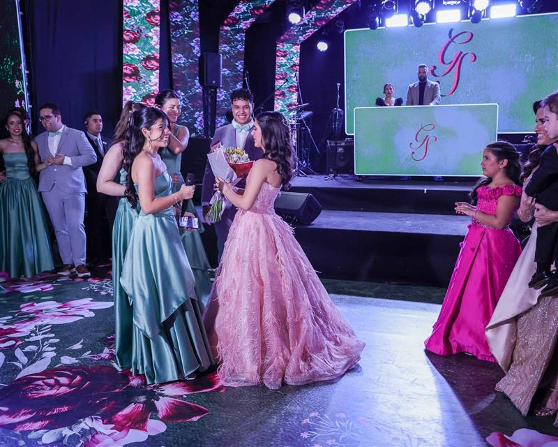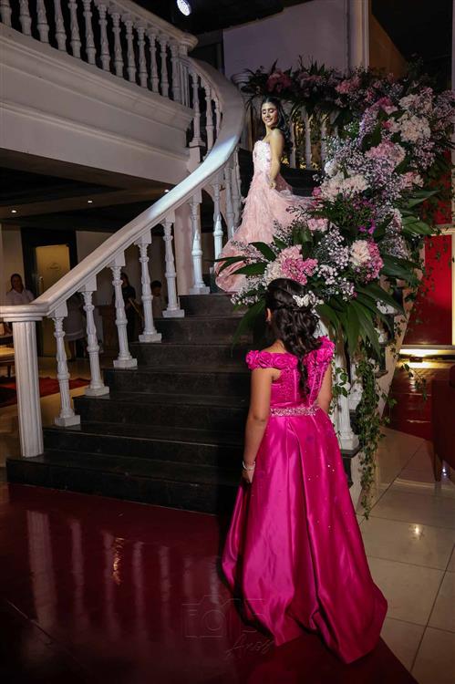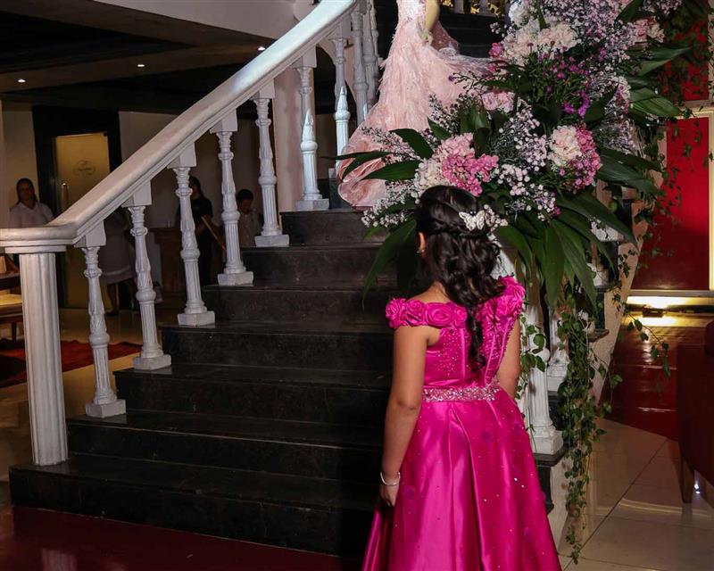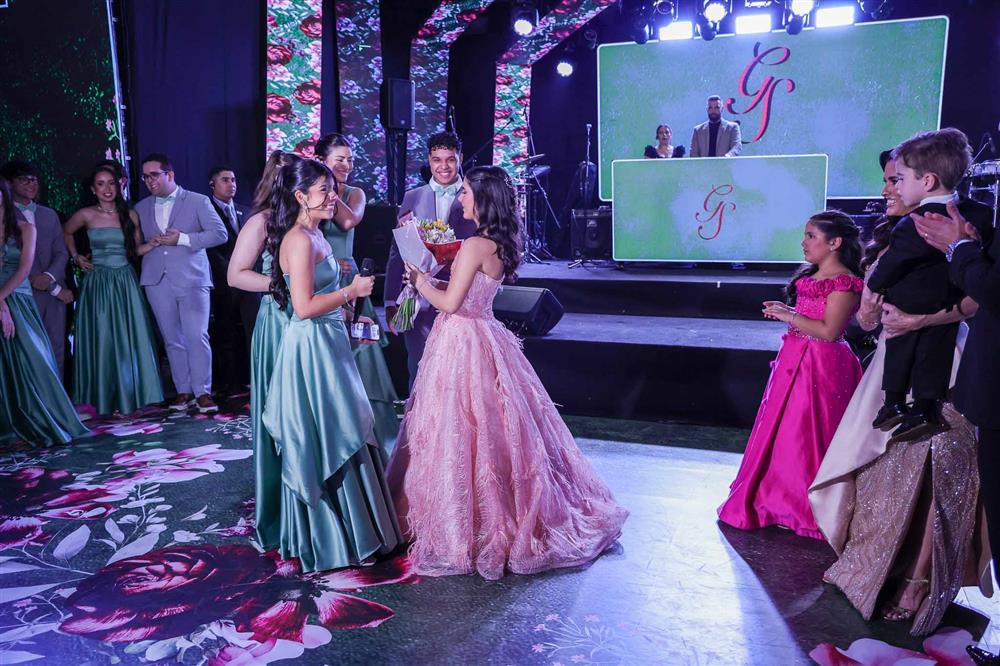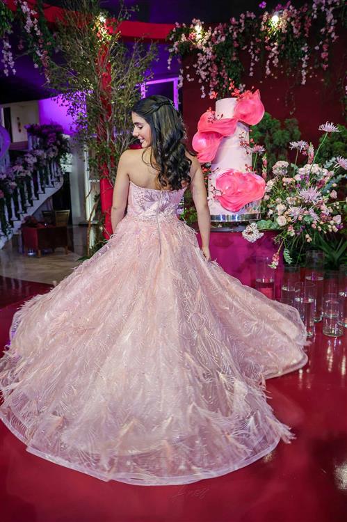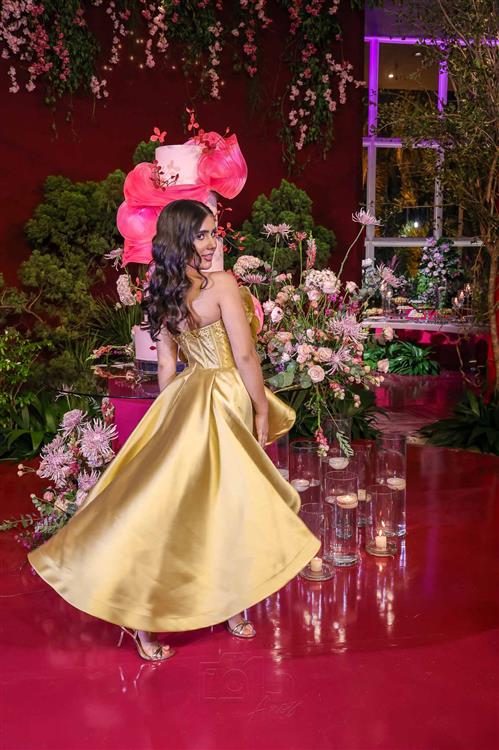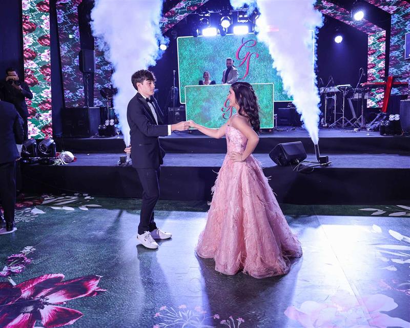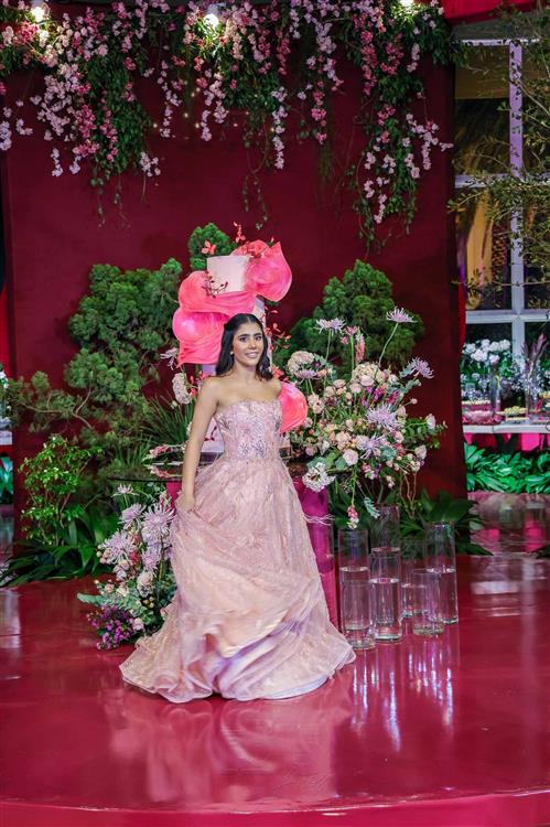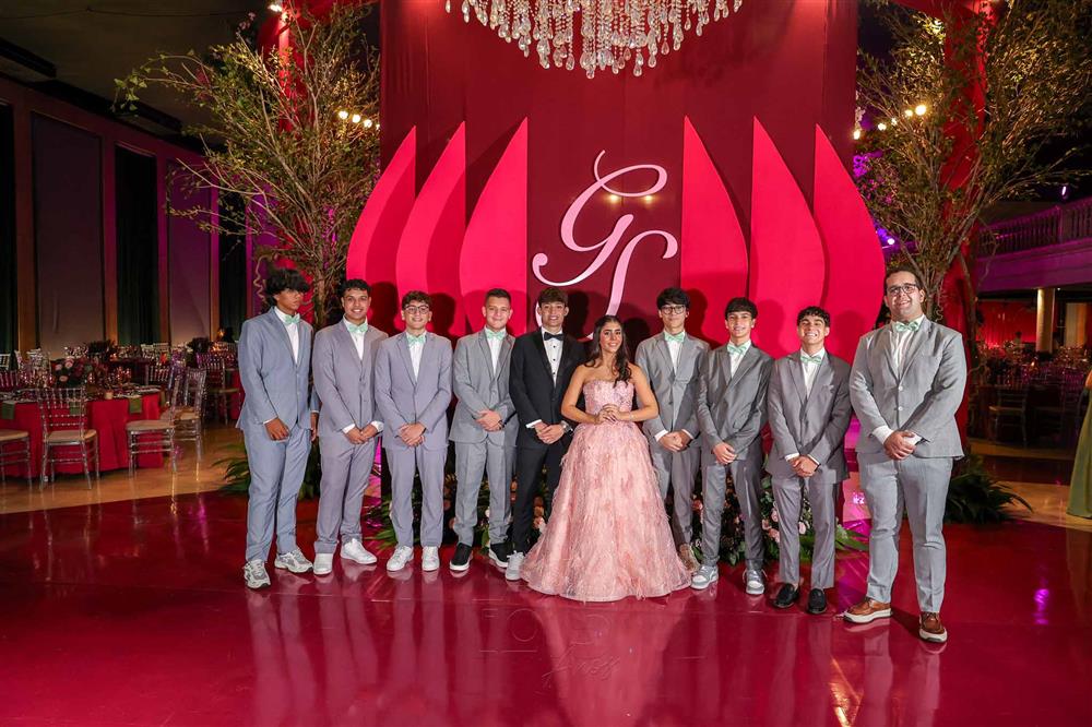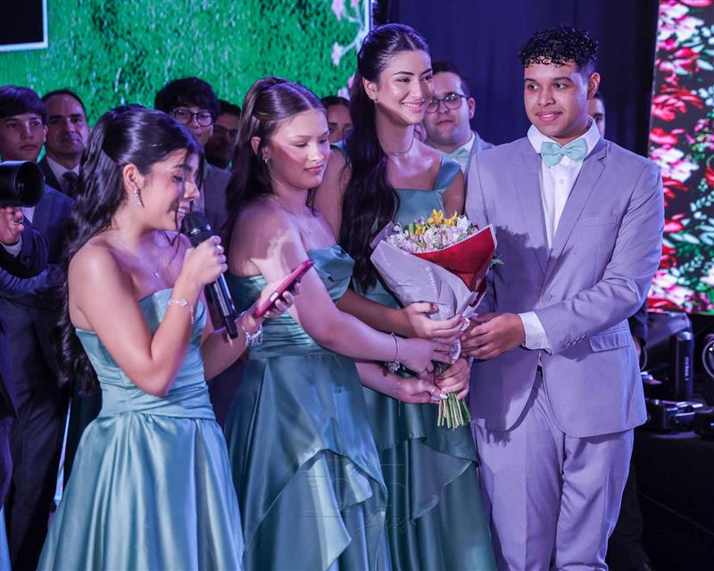 Débora e Giovanni Sá reuniram familiares e amigos para a celebração do baile debutante de Giovanna Sombra, tendo o Alice's Buffet como palco na noite de 14 de março de 2025.