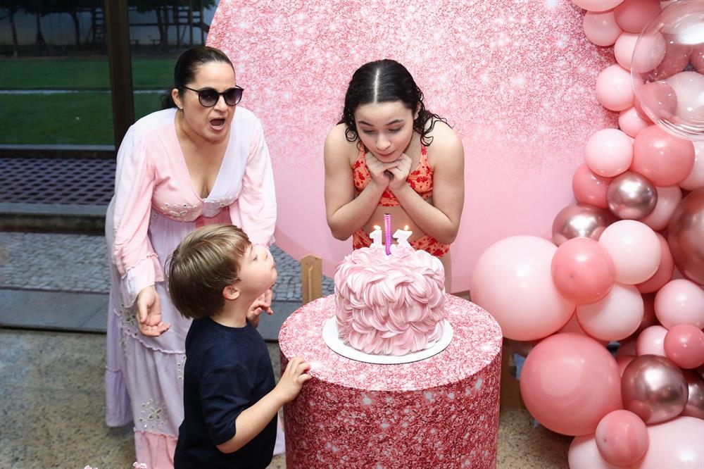 Ao lado da mãe, Janille Brasileiro, Mariam Valentina protagonizou um dos momentos mais emocionantes da festa durante o tradicional “parabéns”, esbanjando alegria e deixando a celebração ainda mais inesquecível.