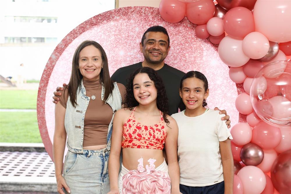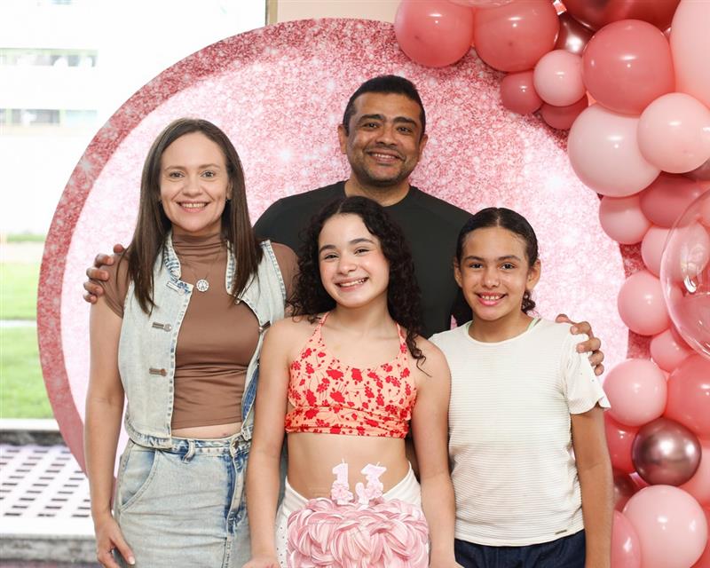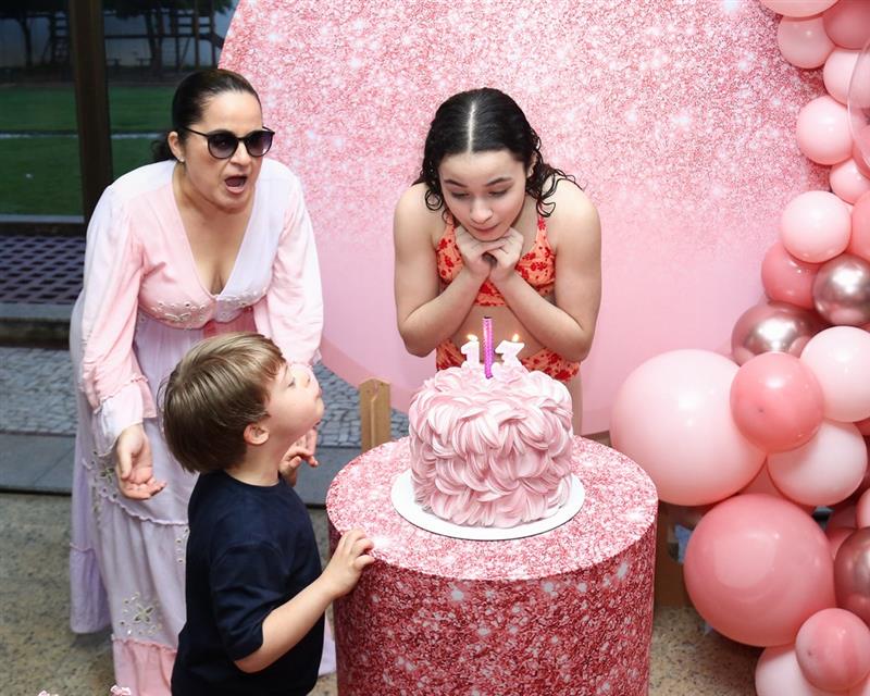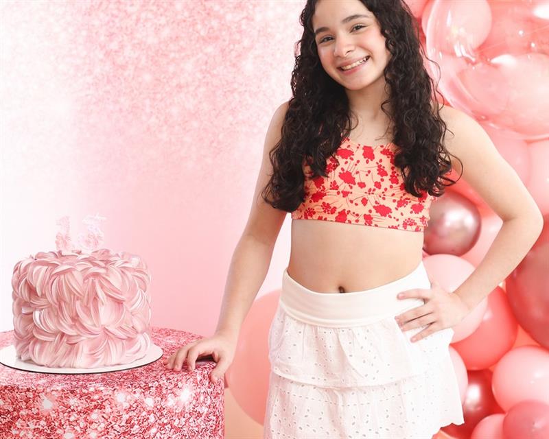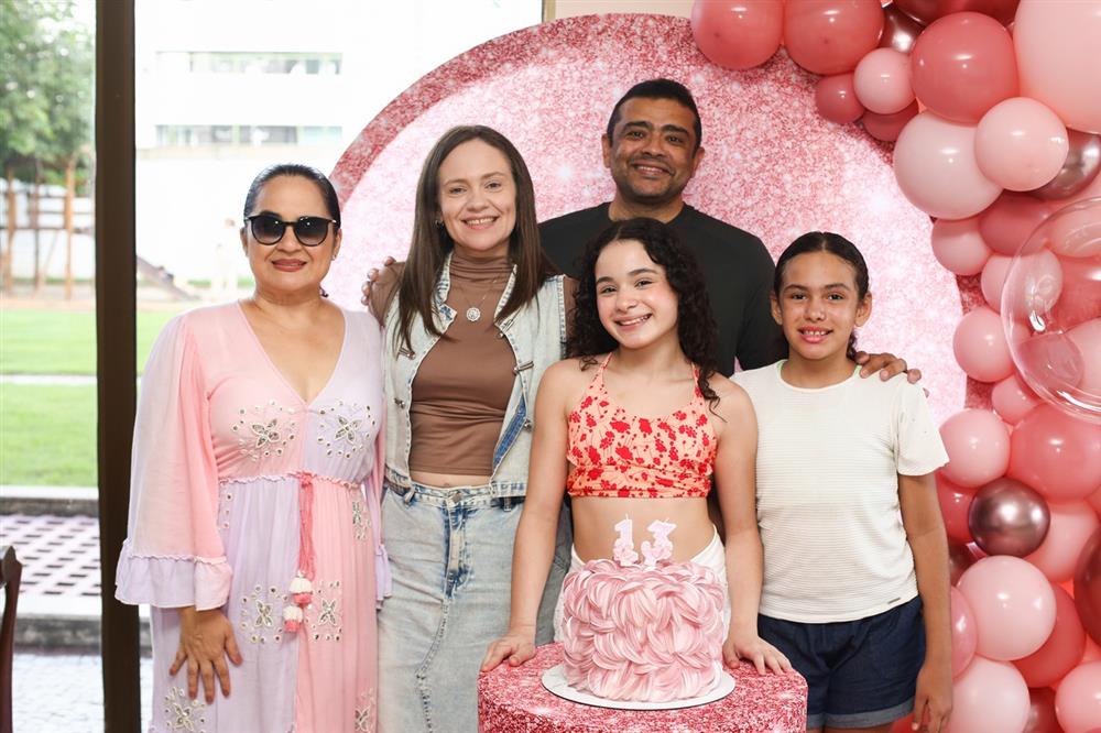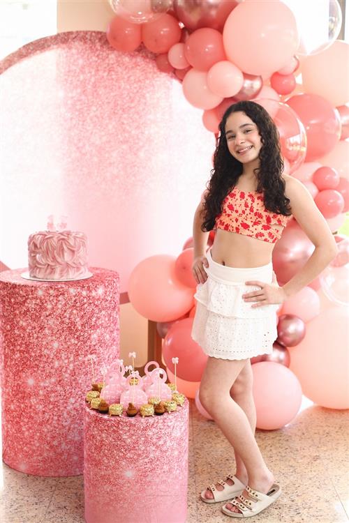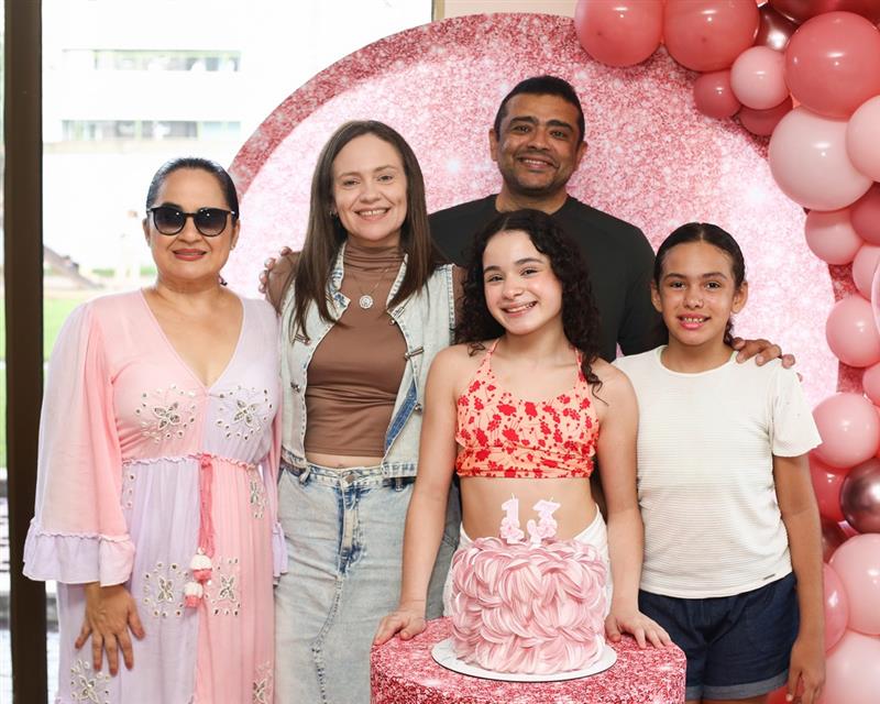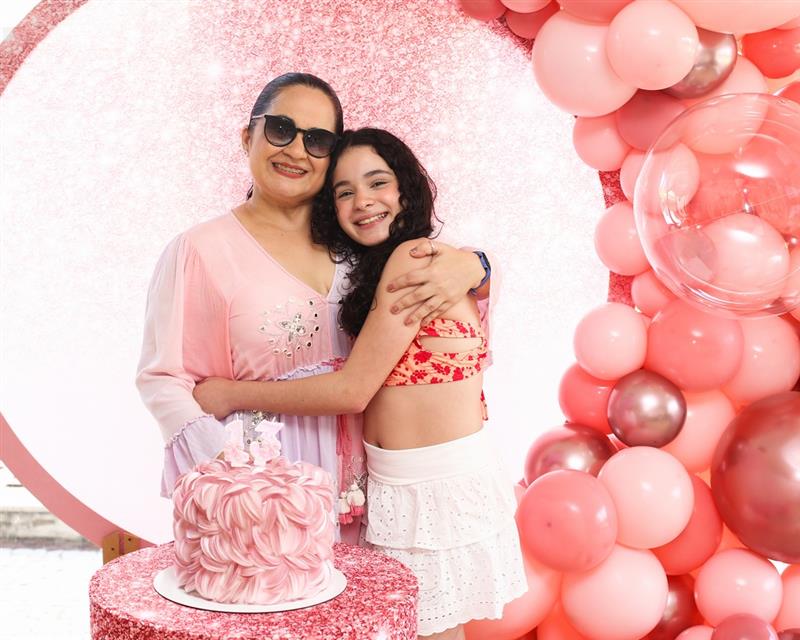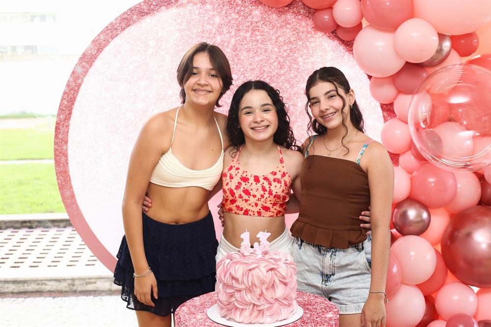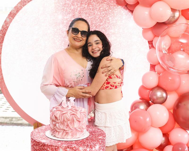 Mariam Valentina celebrou seus 13 anos em uma tarde de sol, piscina e muita alegria, no dia 28 de março de 2026, ao lado de familiares e amigos.