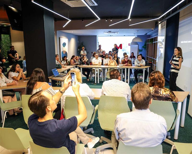 Estratégias práticas para fortalecer o autocuidado e desenvolver uma rotina mais equilibrada, utilizando conceitos da neurociência aplicados à realidade do mercado, foram abordadas no evento, que consolidou que a saúde mental também é um diferencial competitivo na atuação profissional.
