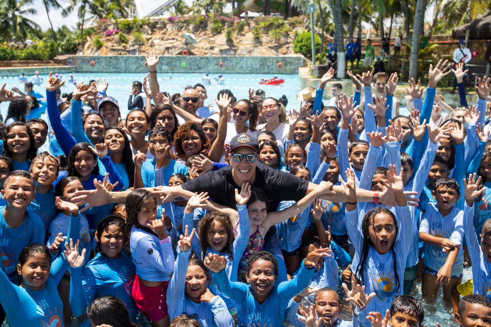 O Beach Park recebeu, nessa terça-feira (15), 200 crianças e adolescentes do Instituto Povo do Mar (IPOM) para uma programação especial em alusão ao Mês das Crianças. Junto a 60 voluntários do instituto e instrutores do Aqua Park, os pequenos participaram de um momento de bate-papo com o capitão do time do Basquete Cearense, Felipe Ribeiro, que conversou com as crianças sobre sua trajetória e a importância da prática de esportes durante a infância.