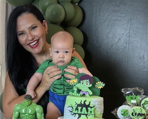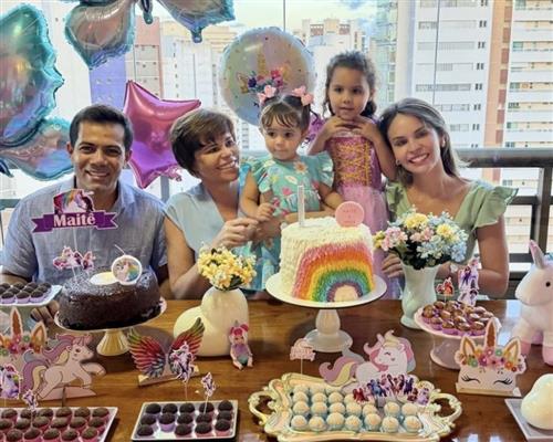 Para coroar a data, o bolo da Lea Doce Sabor, em que se destacou a cor dourada no nome da homenageada. Chloe recebeu votos de muitas felicidades e realizações em sua vida diante do simbolismo da Eucaristia, que representa o renascimento e o recebimento da hóstia consagrada, personificando o corpo de Cristo.