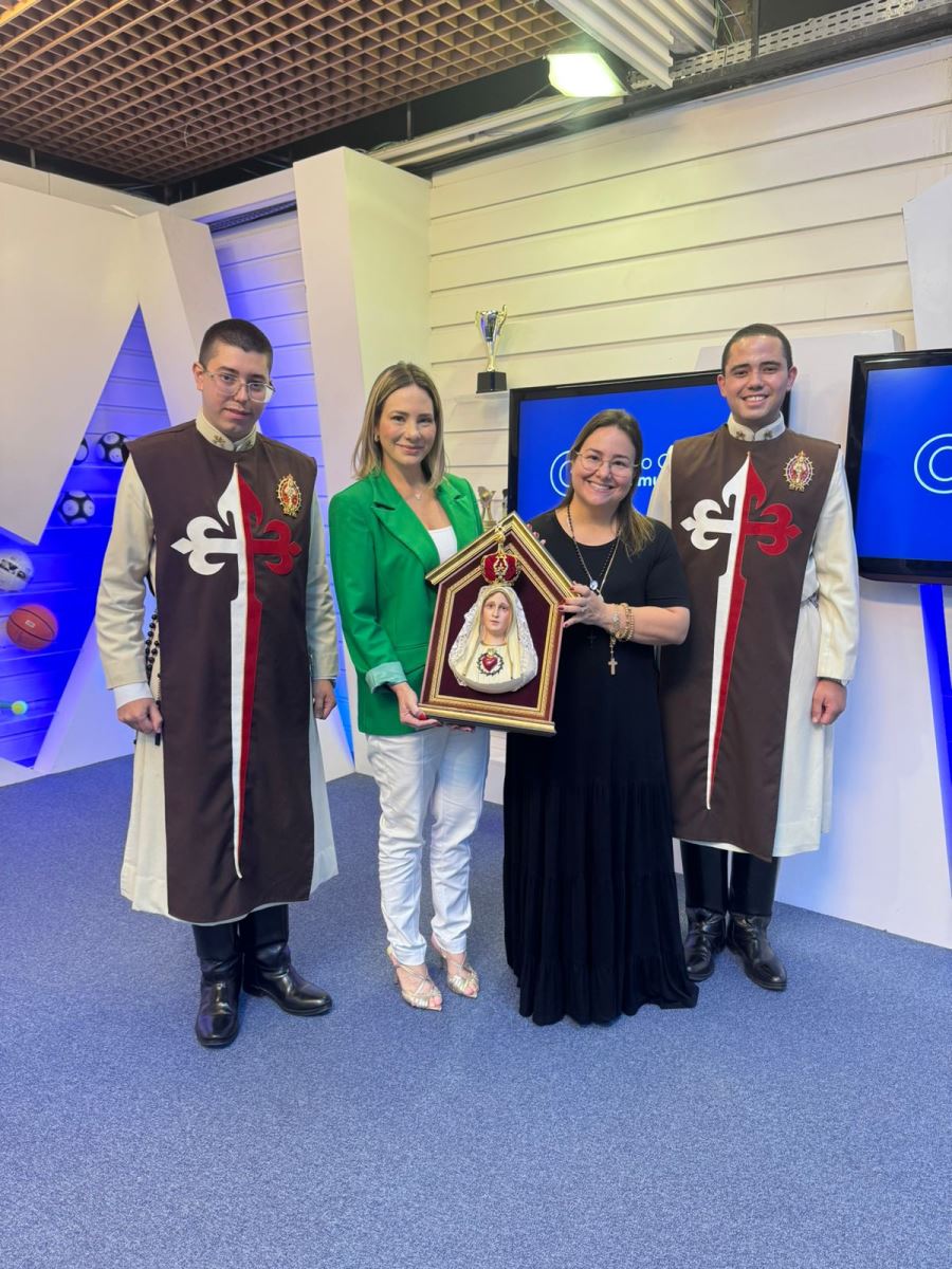 A Associação Católica Arautos do Evangelho visitou os estúdios do Grupo Cidade de Comunicação com a imagem sacra de Nossa Senhora na tarde de quarta-feira, 12 de junho de 2024. Através das mãos dos irmãos Gustavo e Luiz, os colaboradores puderam ser abençoados pela divina mãe.
