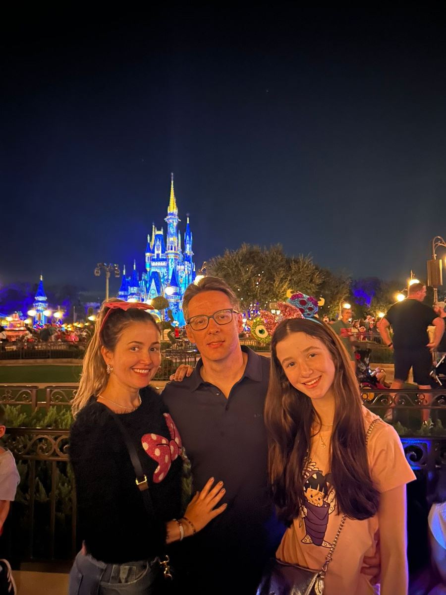 Rafaella e Erik Kleinberg aproveitando ao máximo a temporada de diversão e adrenalina por Orlando, acompanhados dos filhos, Nicole e Robert, e das amigas da família Thina e Lara Pimenta.