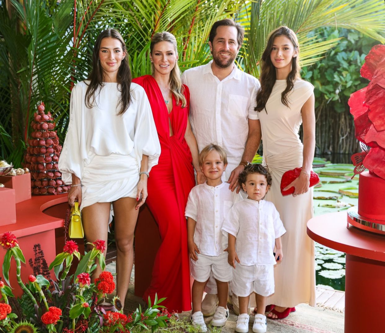 Ao lado do marido Rodrigo Frota e dos filhos Maria Clara, Gabi, Francisco e Oscar, Bruna recebeu o carinho de todos e viveu um dia de celebração e gratidão.