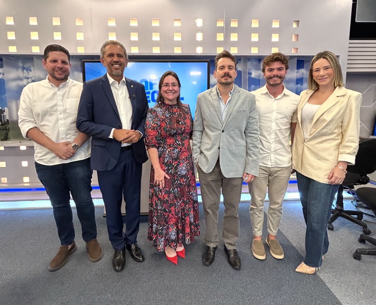 O governador Elmano de Freitas concedeu entrevistas exclusivas à TV Cidade Fortaleza e à rádio Jovem Pan News Fortaleza, emissoras do Grupo Cidade de Comunicação, nesta terça-feira (16). Na ocasião, foi recebido pelo presidente do GCC, Miguel Dias Filho, e pelos diretores Mayara Silva, Gaída Dias e Michael Dias.