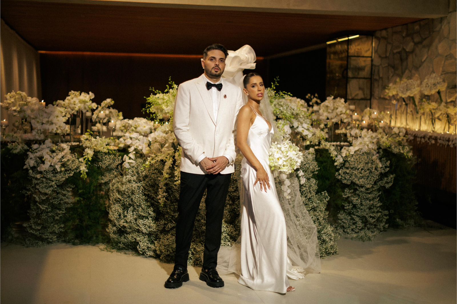 Carol Meireles e João Neto celebraram sua união na tarde desta terça-feira (20), no jardim da residência do casal. O casamento, de perfil intimista, reuniu cerca de 60 convidados e contou com a presença de nomes como, Whinderson Nunes — amigo pessoal do noivo —, o cantor Felipe Amorim e sua namorada Duda, entre outros convidados especiais.