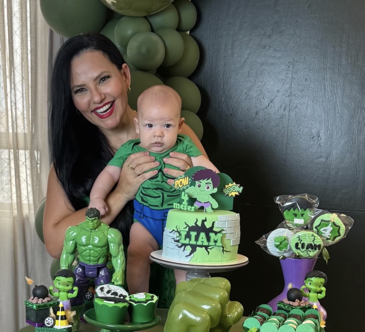 A apresentadora Luciana Ribeiro comemorou mais um momento especial em família: os quatro meses de vida do pequeno Liam. A celebração aconteceu em clima de carinho e alegria, com uma decoração temática inspirada no universo do Hulk, personagem querido pelas crianças.