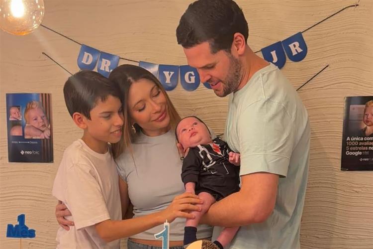 Luciana Ribeiro e Thiago Camelo festejam os dois meses do filho caçula, Liam